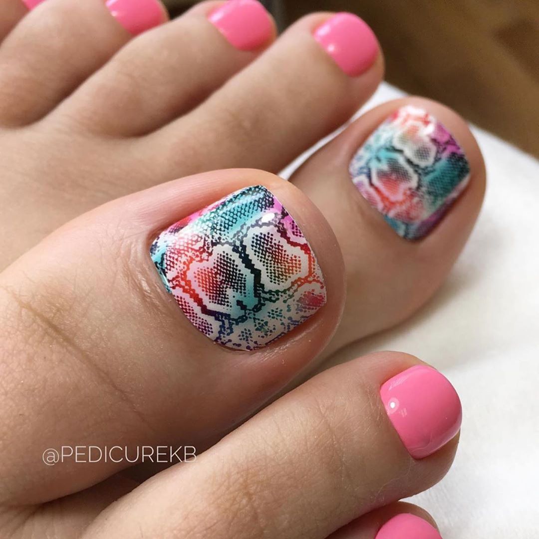 Монохром – всегда актуально и стильно. Использование монохромного нанесения лака – это модный, сдержанный и нарядный дизайн. Простота в нанесении и отличный результат достигается буквально за полчаса. Используя любые цвета, создавая педикюр, вы всегда будете в тренде. Но все же, самыми актуальными тонами будут – синий, жгучий красный, насыщенный серый и нежный зеленый. Приветствуется стальной, алюминиевый, изумрудный, коралловый цвет – выбор только за вами!