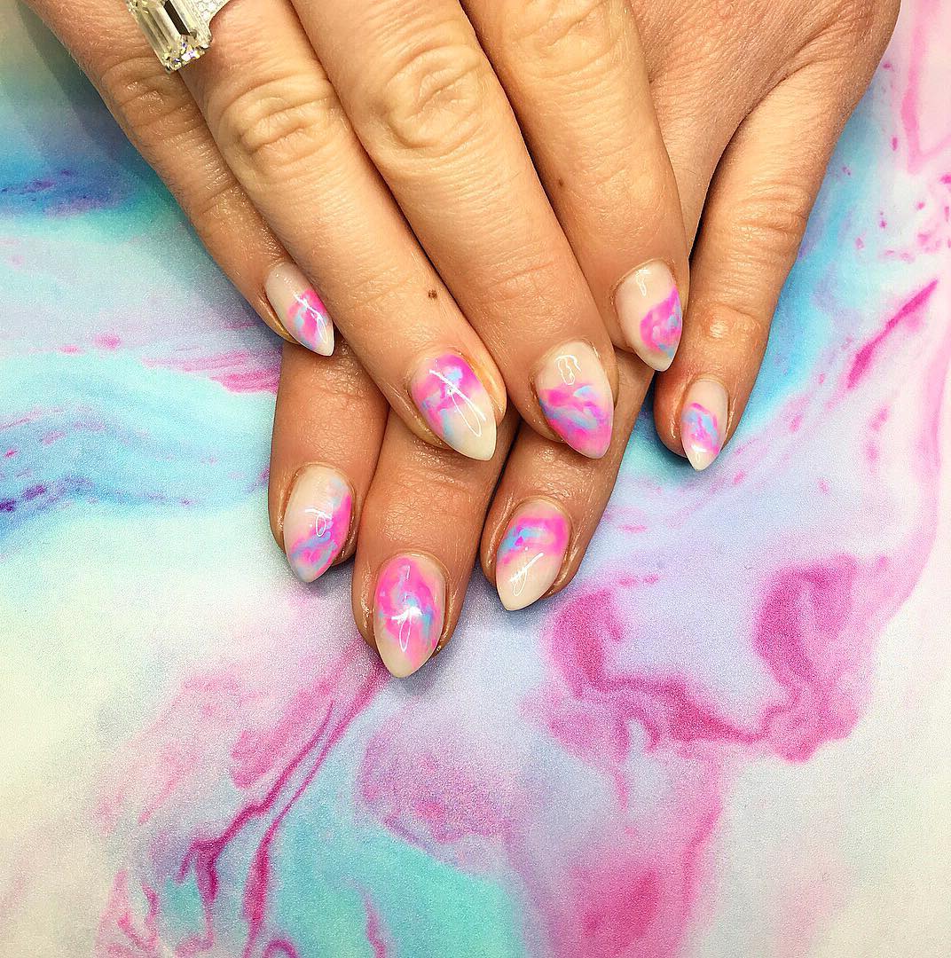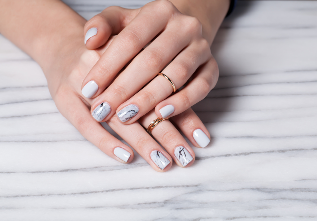 Мраморный маникюр занимает достойную нишу в бьюти-индустрии. Суть его заключается в нанесении прожилок и разводов, похожих на те, которые можно увидеть на настоящем мраморном камне.