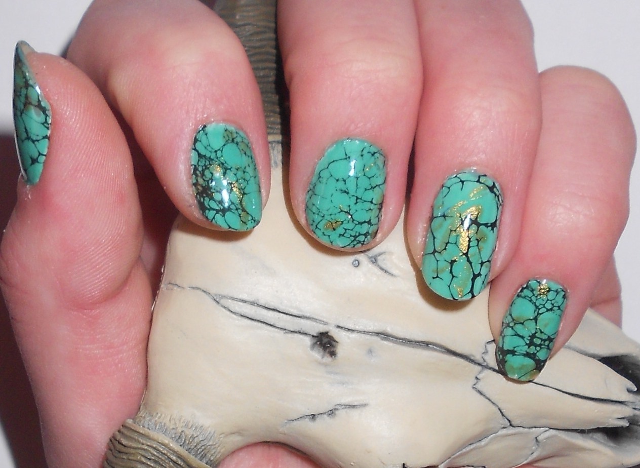 Этим способом на ногтях можно изобразить имитацию малахита, аметиста. При этом для воплощения такого маникюра не нужны специальные навыки и умения. Использовать данный метод можно как в домашних условиях, так и в салонах красоты.