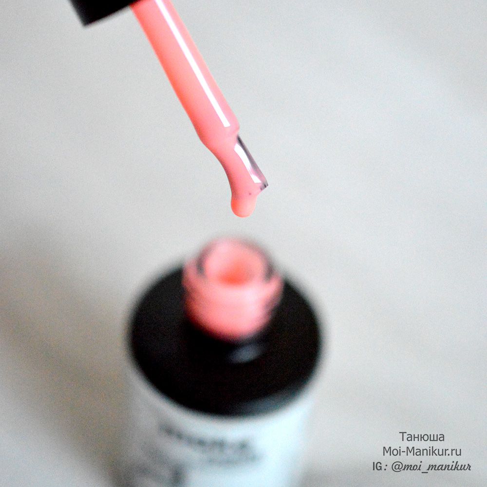 Tint 5.1 – коралловый, сочный, но в то же время нежный цвет. Его можно использовать как самостоятельно для перекрытия всего ноготка, так и в сочетании с другими цветами системы для выполнения градиентных переходов. Кисточка короткая и широкая, не пушится, что весьма практично, так как ее уголком удобно растягивать материал на ногте. Я бы сделала ее чуть уже: за счет плотности материала его сложно полностью вытереть о горлышко, и при возвращении во флакон ворсинки цепляются, и в него могут попасть пузырьки воздуха.
