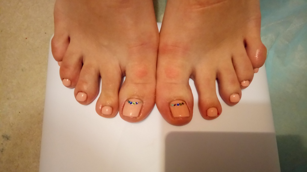 Минимализм в педикюре — украшения располагаются лишь на больших пальцах