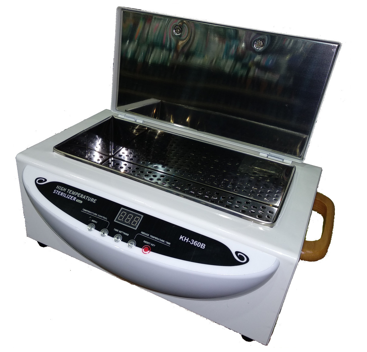 В комплект входит выдвижной ящик для очистки мелких деталей. Судя по отзывам, стерилизатор Donfeel HB-382 очень прост в применении и эффективен. Преимущества: не занимает много места, длинный сетевой шнур, высокое качество обработки инструментов, надежные материалы, оптимальная вместимость, ящик для мелких деталей, удобная панель управления, стильный внешний вид. Недостатки: высокая цена, подходит только для металлических приспособлений.