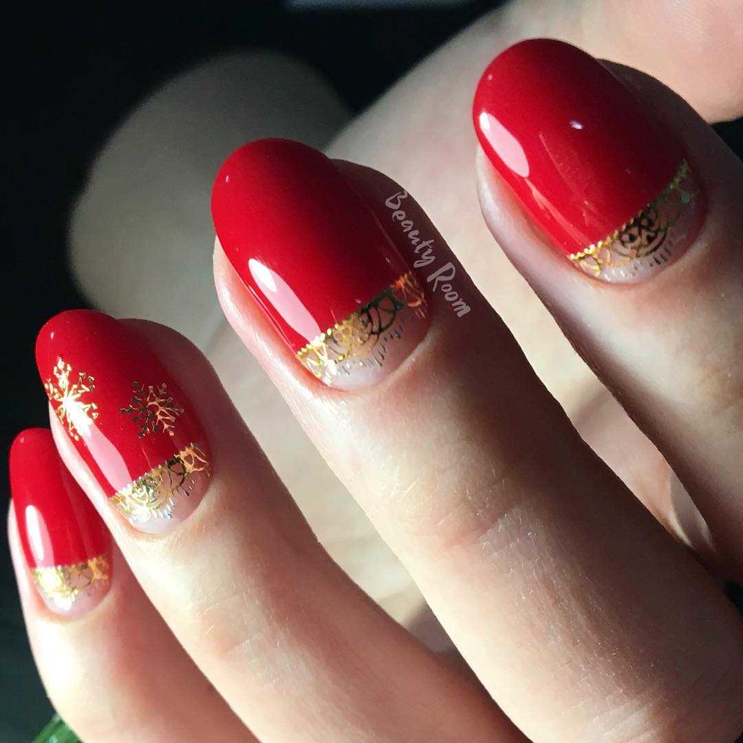Красный маникюр с золотом или серебром