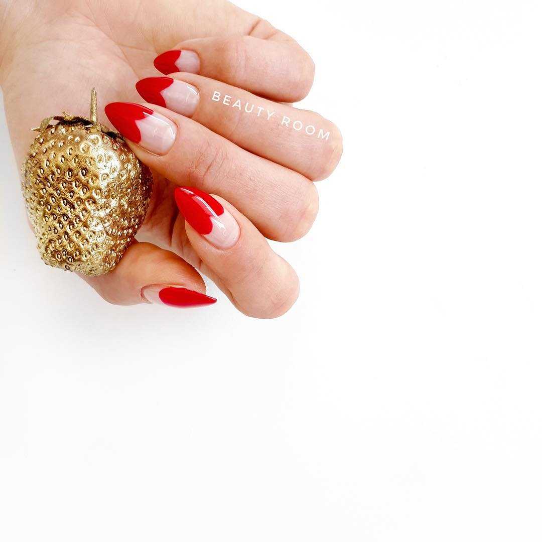 Мы все знакомы с классическим французским маникюром – классическая основа с белыми кончиками. Чтобы придать вашему французскому маникюру новое и классное обновление, поменяйте белый цвет – на красный. В результате получается сексуальный и утонченный вид ногтей, который простой, но в то же время шикарный. Красный французский маникюр идеально подходит для вечеринки или работе в офисе. Это также один из самых универсальных вариантов. Попробуйте сделать его с овальной или миндальной формой ногтей.