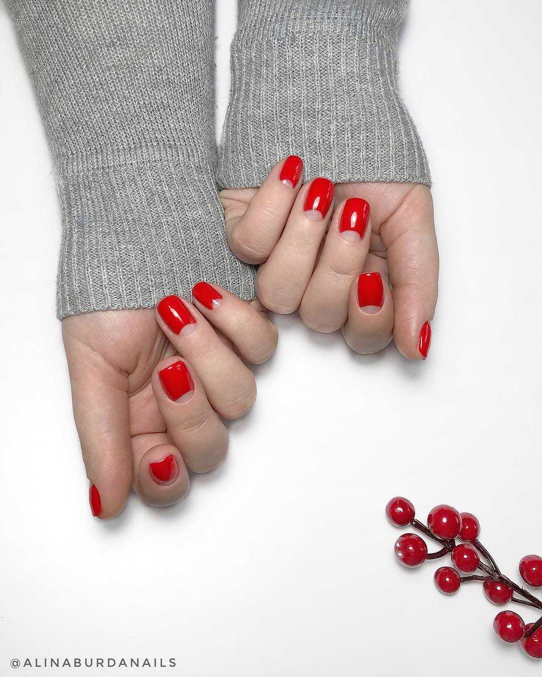 Красный маникюр на короткие ногти