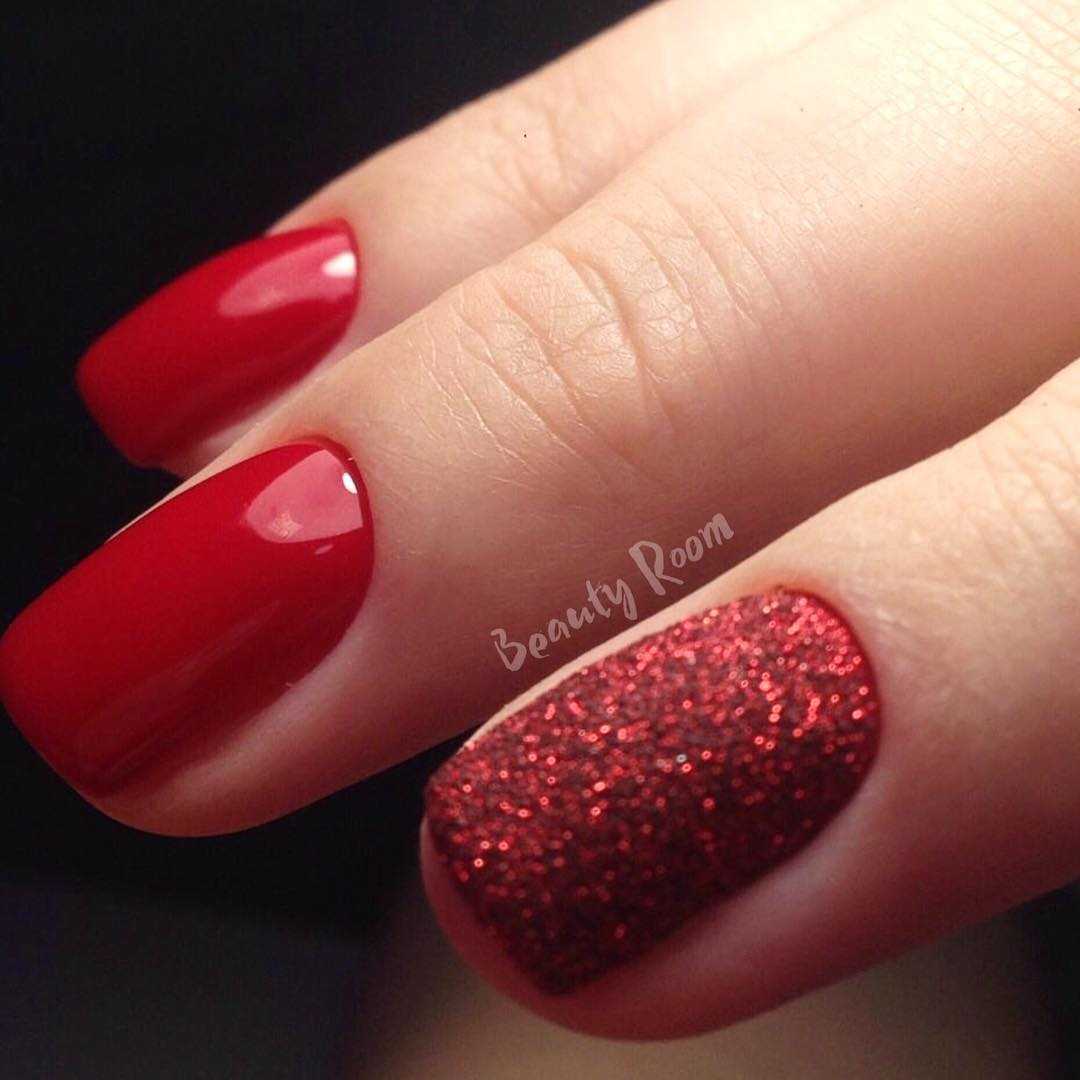 Красный маникюр с блестками