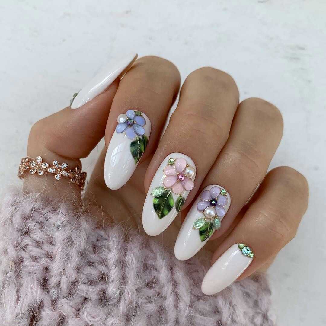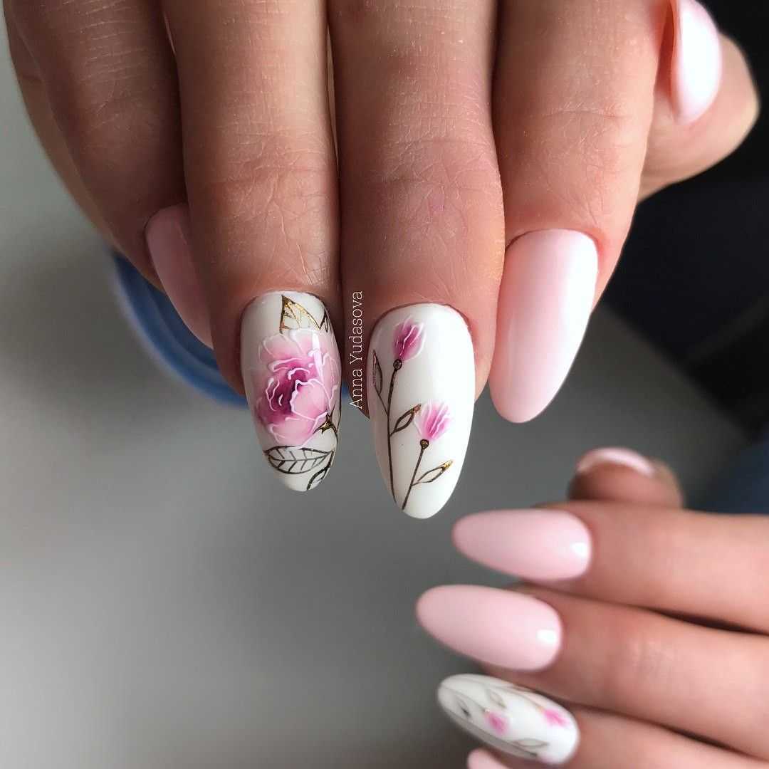 Маникюр с нежными цветами: актуальные оттенки и декор