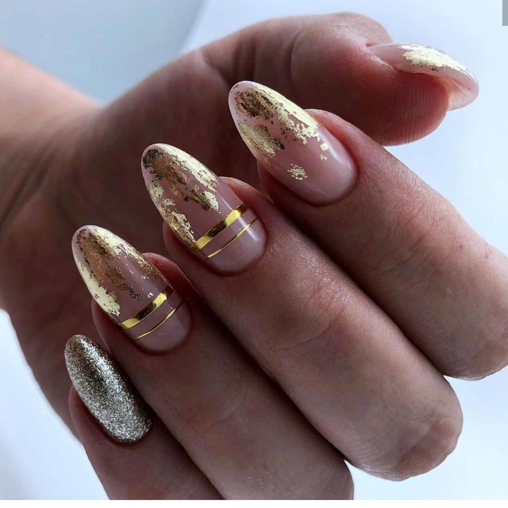 Данный дизайн легко выполнить самостоятельно. Благодаря низкой цене фольги он не будет затратным. Можно выбрать фольгу разных цветов, чтобы добавить яркости маникюру. Главное – чтобы цвет фольги, втирки и цветного покрытия сочетались друг с другом.