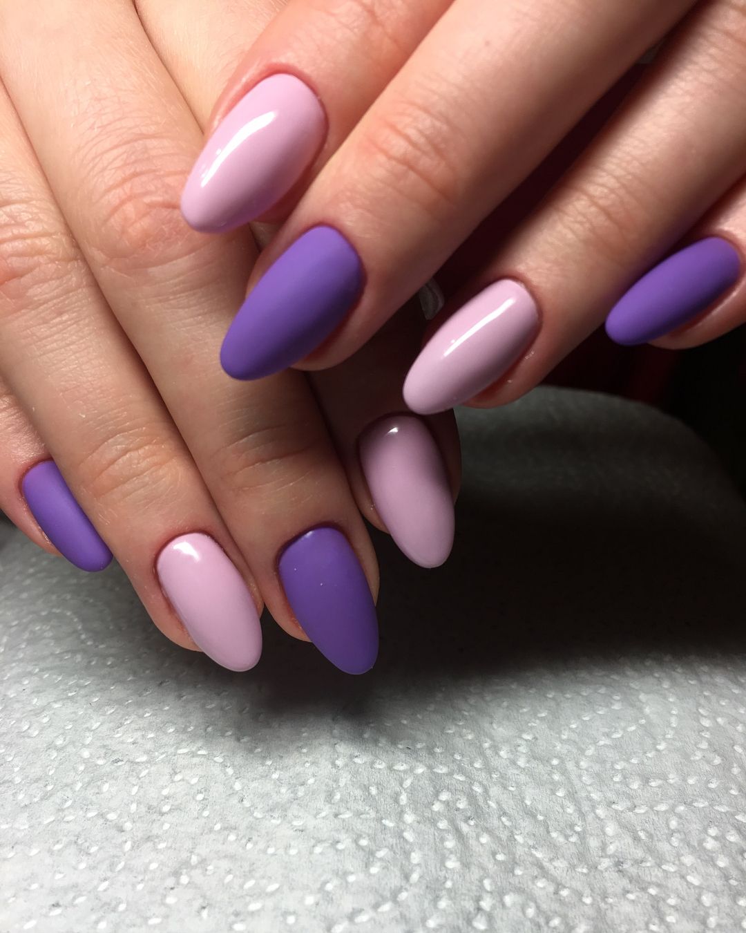 Яркие акценты, стразы и причудливые узоры не приходятся по нраву? Стоит сделать ставку на нестареющую классику в обновленном исполнении! Один из таких типов — комбинация однотонных покрытий разных оттенков на пальцах одной кисти. Удачно сочетаются глубокие темные цвета с пастельными и схожие по гамме оттенки.