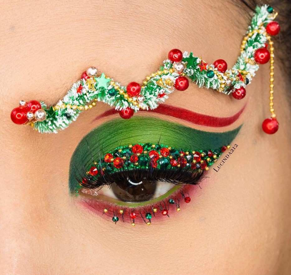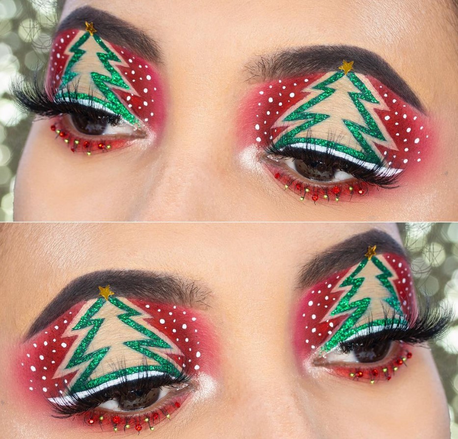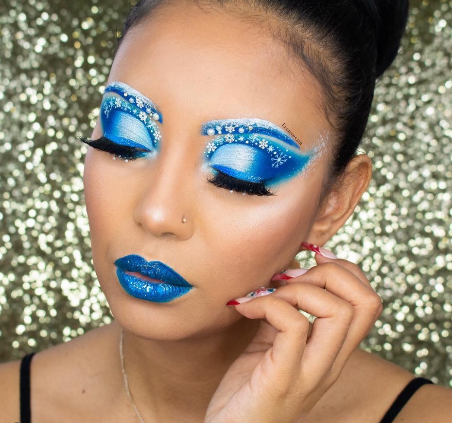 Шикарный новогодний макияж 2024 яркими тенями, фото роскошных примеров