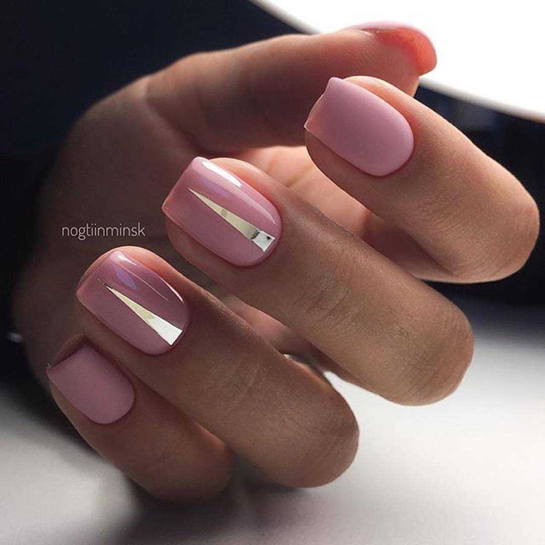 Еще один натуральный вариант покрытия, который делает едва заметный акцент на ваших руках. Оттенок лака чуть-чуть светлее вашего оттенка кожи, но при этом сильного контраста нет. микс различных оттенков. Вовсе не обязательно использовать только один оттенок при покрытии. Вы можете подобрать несколько оттенков и наносить их поочередно или хаотически. При таком нанесении можно использовать до 5 различных оттенков. Отлично сочетаются оттенки розового и коричневого. нюд камуфляж. Еще один способ сделать очень мягкий акцент на своих руках. Используем оттенки розового, хаки и коричневого. мокка и золото. Необычный вариант покрытия, который смотрится празднично и нарядно, но при этом не утрачивает своей сдержанности и элегантности. Основа такого маникюра — это, конечно, мокка. Золото добавляем совсем немного золота на кончиках ногтей. При таком сочетании вам может и не понадобятся дополнительные украшения на руки или пальцы. Одного кольца вполне достаточно, чтобы получить прекрасный и завершенный образ. нюд и лаванда. Еще один интересный вариант для покрытия, если хочется чего-нибудь оригинального. Сам по себе лавандовый оттенок довольно яркий, даже если взять самые приглушенные оттенки. А вот добавить немного лаванды к бежевому нюду — это идеально. Можно сделать любой небольшой лавандовый акцент на ногтях. нюд и минимализм. Тренд этого сезона — простота и лаконичность. Если уж добавляете узоры и геометрические фигуры, то не переусердствуйте. Всего должно быть в меру.