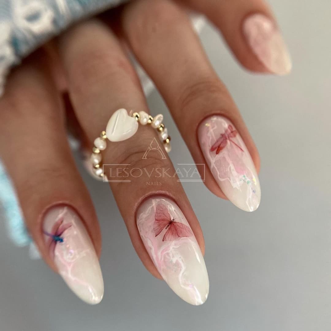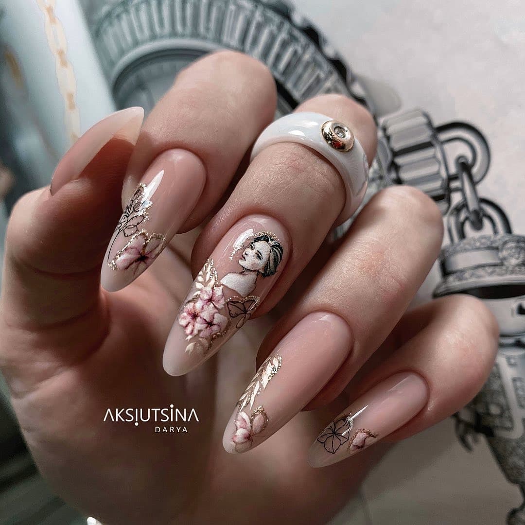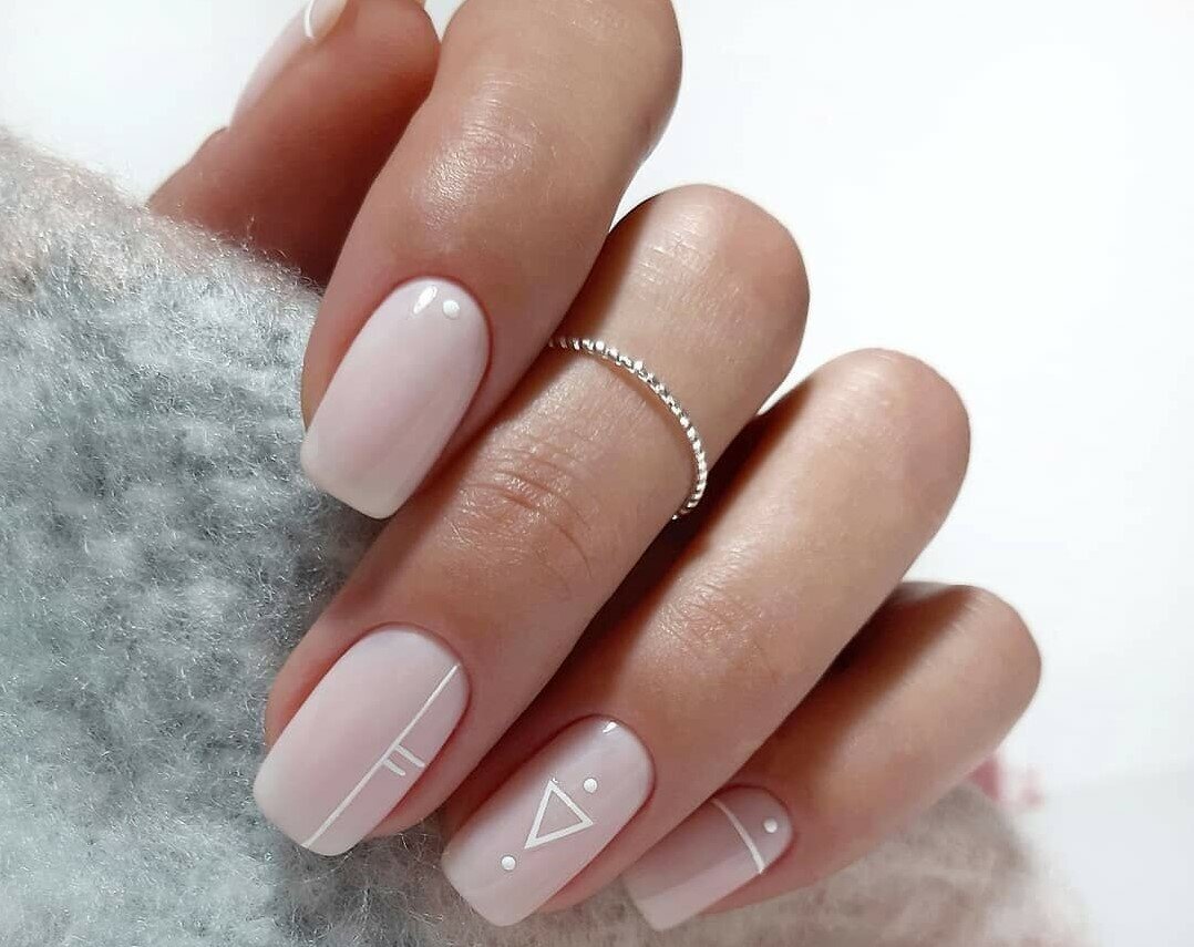 - Самый явный тренд нюдового маникюра 2022 для длинных, миндальных ногтей — рисунки и абстракции. Вовсю используем геометрию, животный принт.