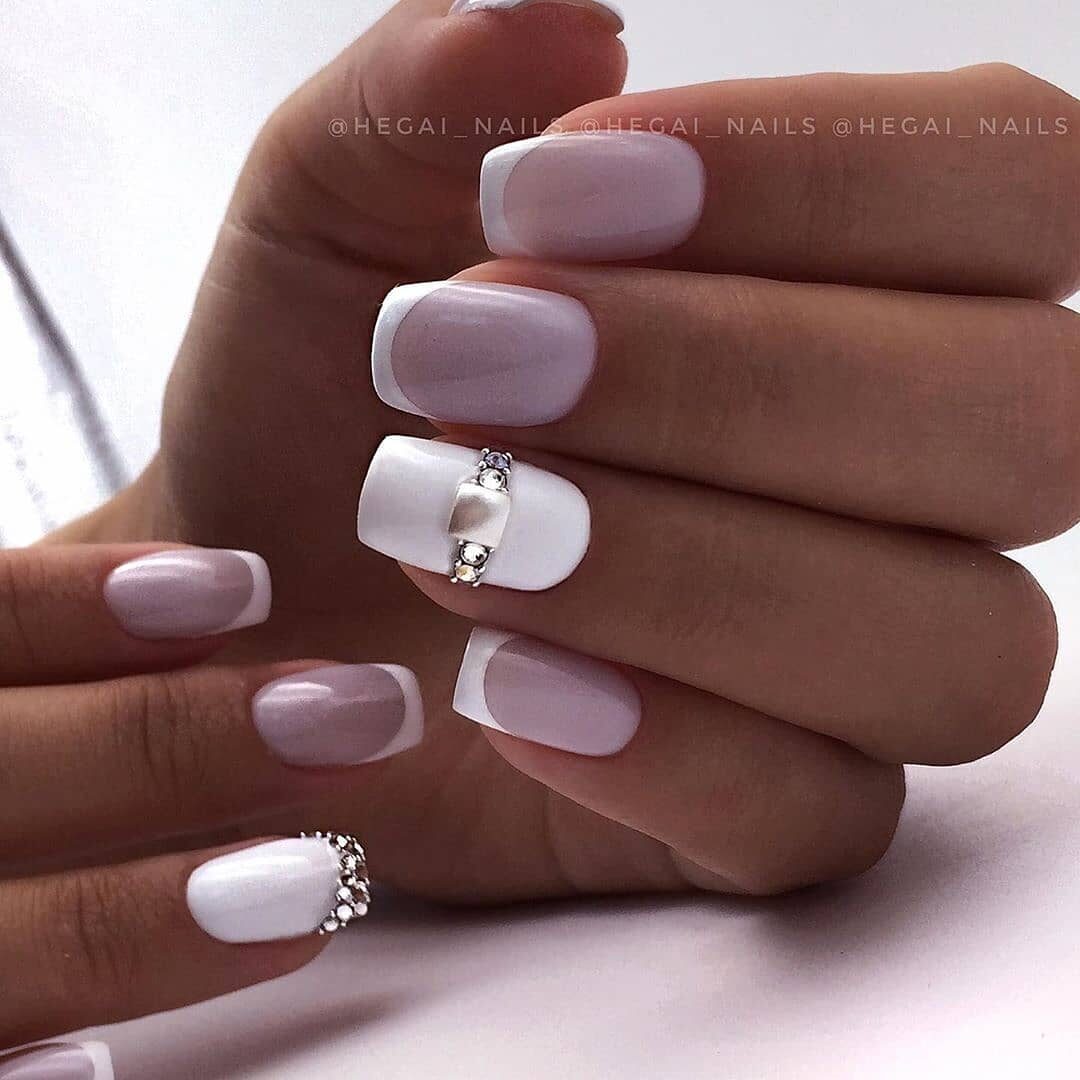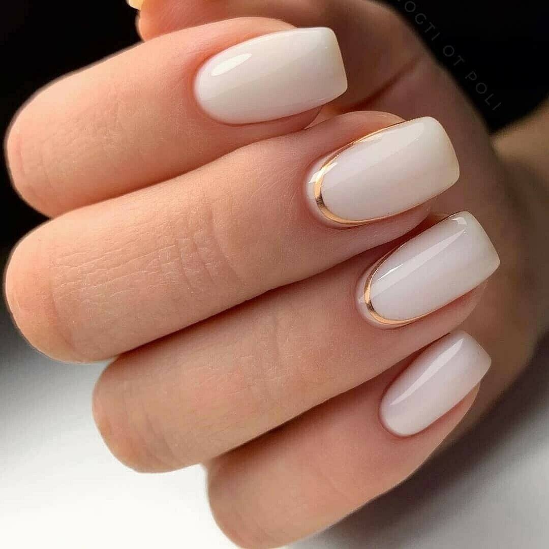 Идеальное решение для коротких ногтей и скромного декорирования. Можно дополнить 1-2 пальчиками, выполненными в чисто-белой расцветке.