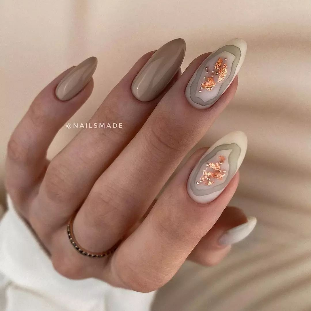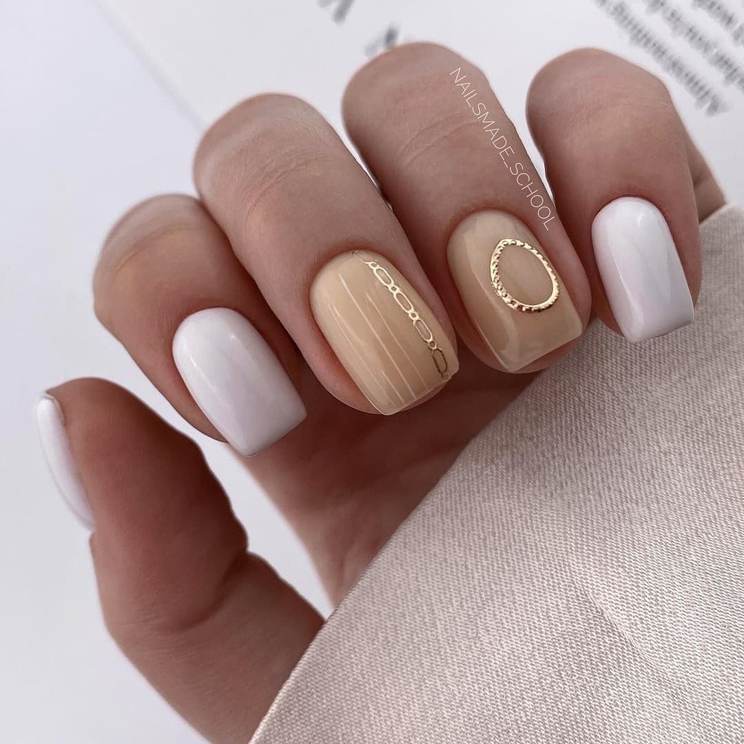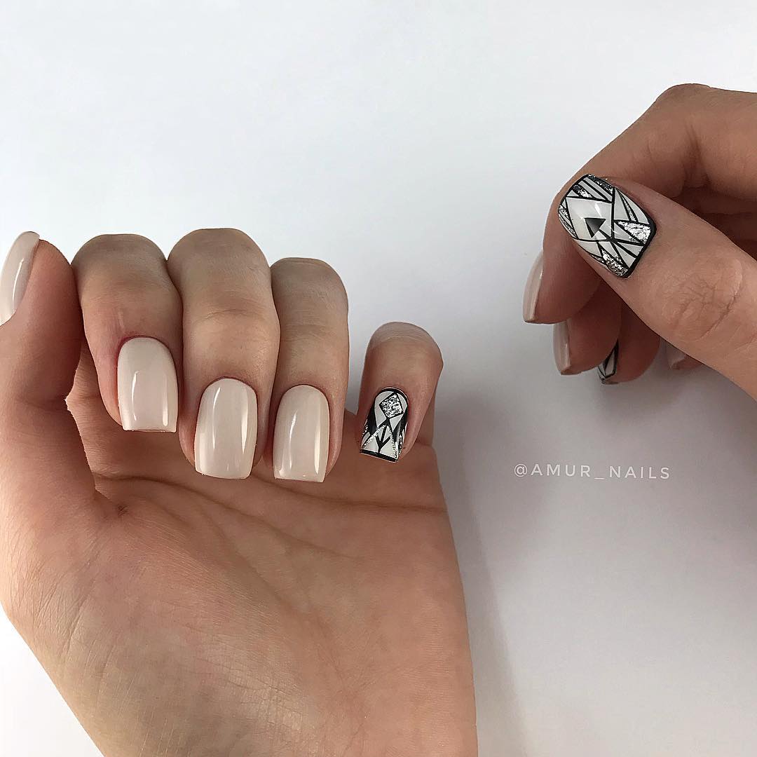 Пробуй делать разнообразные нейл-арты на бежевом фоне, а если захочется более сдержанного лука — никто не запрещал использовать только один ненавязчивый яркий элемент.
