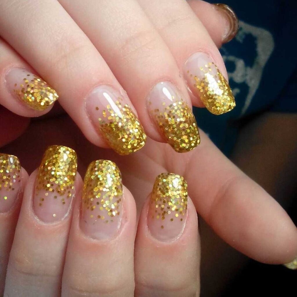 А еще с помощью блесток делается эффект омбре — переход цвета.