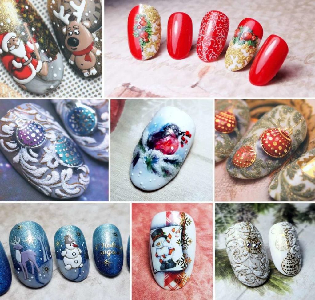 Если вы хотите создать по-настоящему запоминающийся новогодний маникюр на длинные ногти, то не забудьте про рисунки и узоры. Это может быть снежинка, елочка, сани с подарками или символ наступающего года. При желании можно даже создать целую историю на ногтях, соединив разные элементы в единое целое.