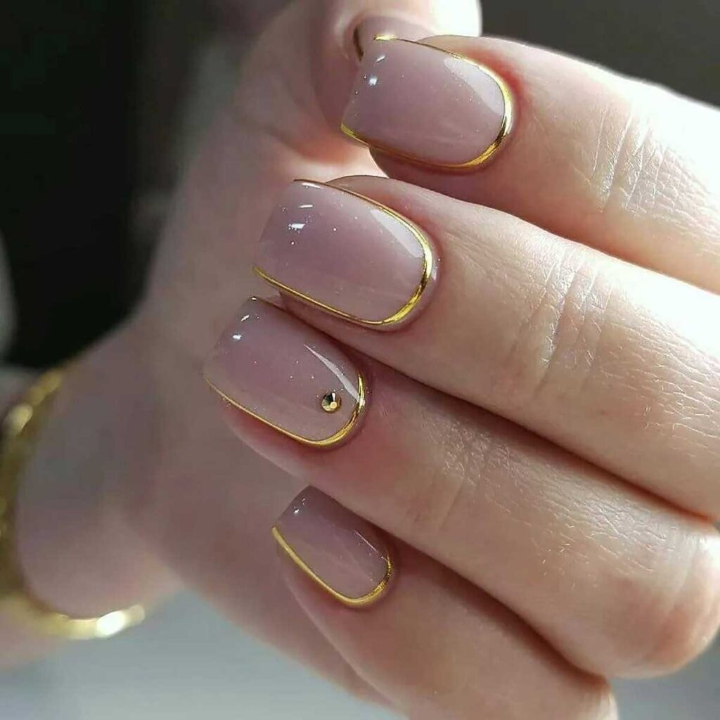 Отлично подойдет для нового года модный маникюр, когда ноготь окружен металлизированной рамкой. Такая красота отлично смотрится и на коротких, и на длинных ногтях. На квадратной форме особенно стильно. Рекомендуем выбрать для рамки именно золотой. Такой маникюр подойдет как сдержанным дамам, приверженкам классики, так и модницам.