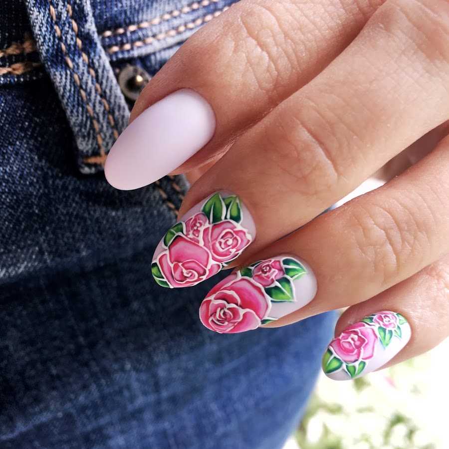 Нюд подойдет для маникюра на короткие и длинные ногти. На длинных ноготках можно создать много необычных дизайнов мрамора и цветочного нейл-арта. Также можно попробовать варианты росписи и декора, благодаря которым маникюр будет смотреться выразительно и заметно. На короткие ногти можно попробовать однотонные дизайны с геометрией.