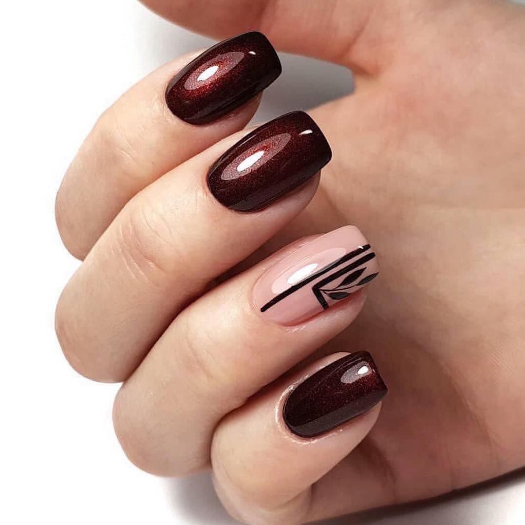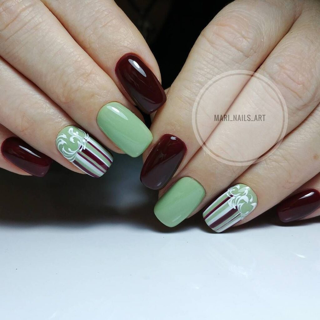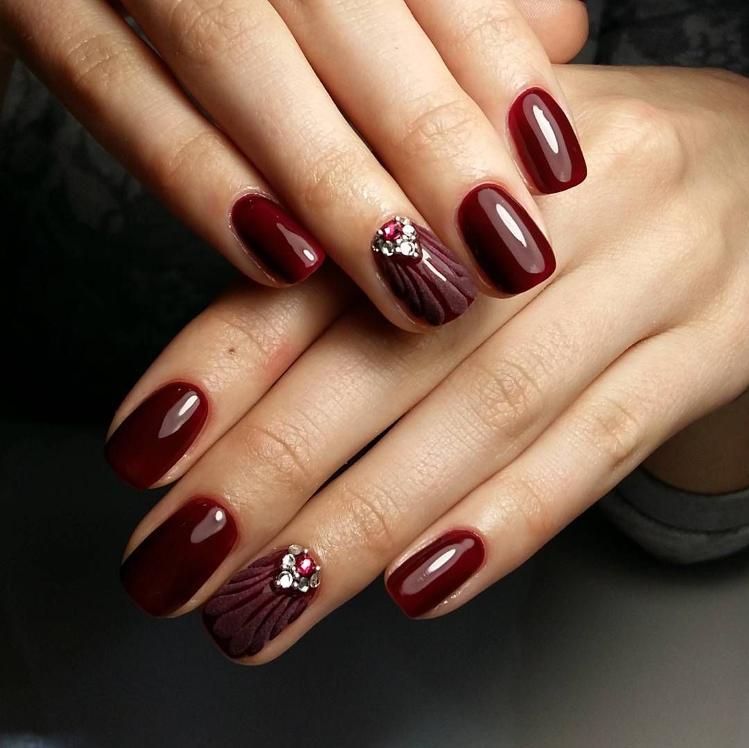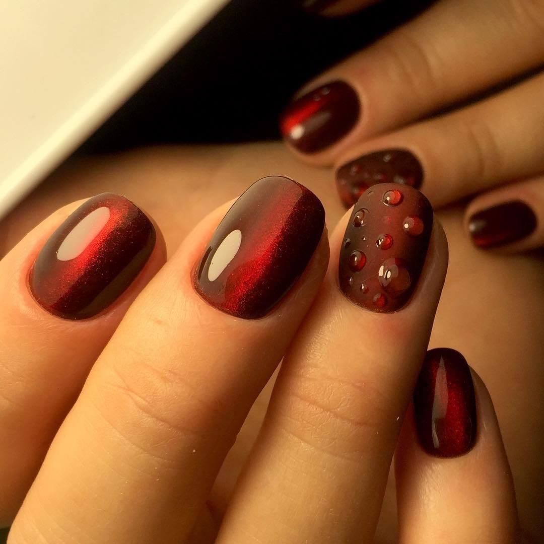 Красный станет ярким, но ненавязчивым акцентом в выбранном нейл-образе. Он может быть сочным или приглушенным, насыщенным или более бледным. Под стать ему подбирают коричневый оттенок лака, чтобы вместе тона выглядели гармонично. Лучше всего сочетаются с красным темно-бежевый, какао, каштановые оттенки.