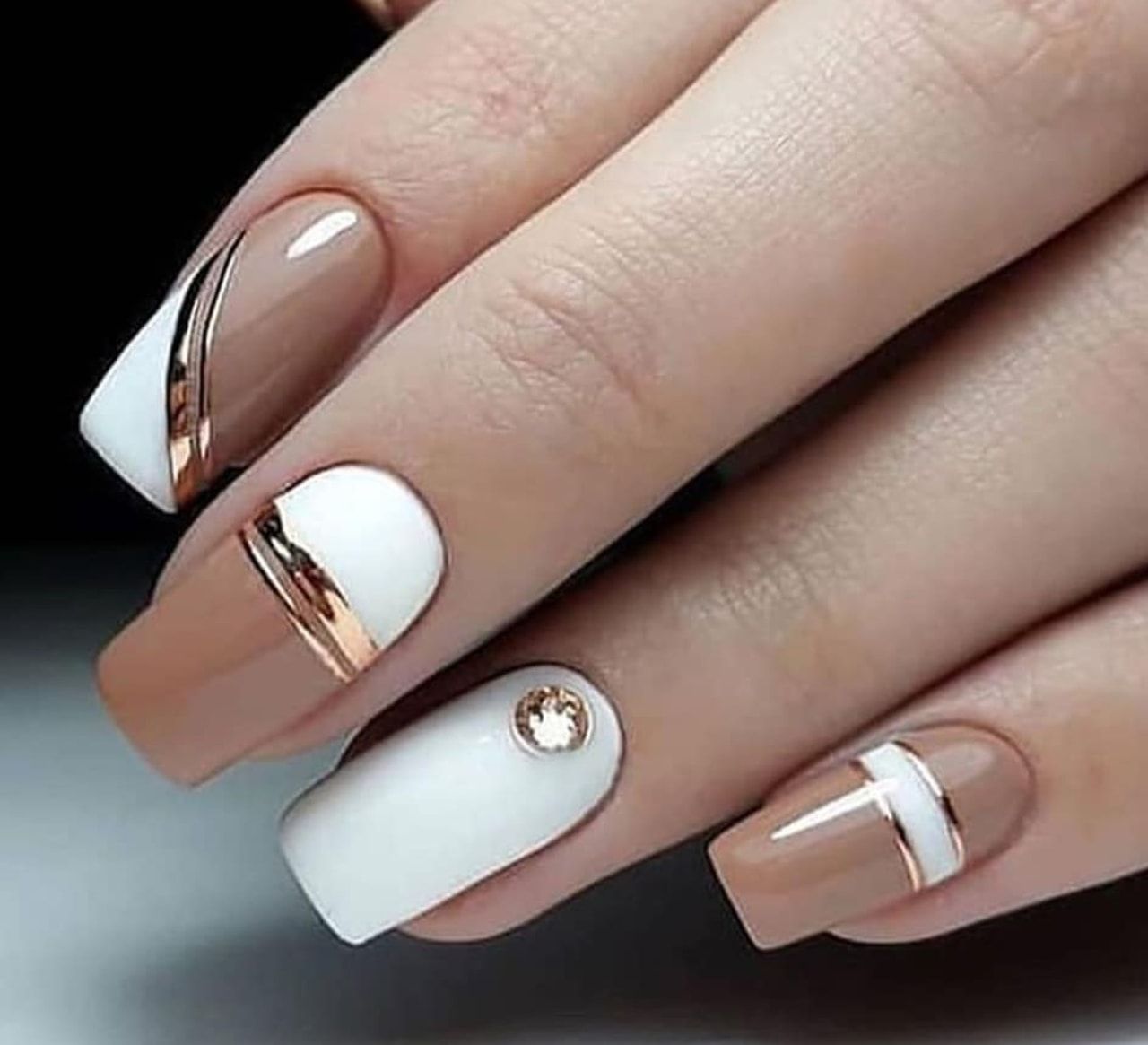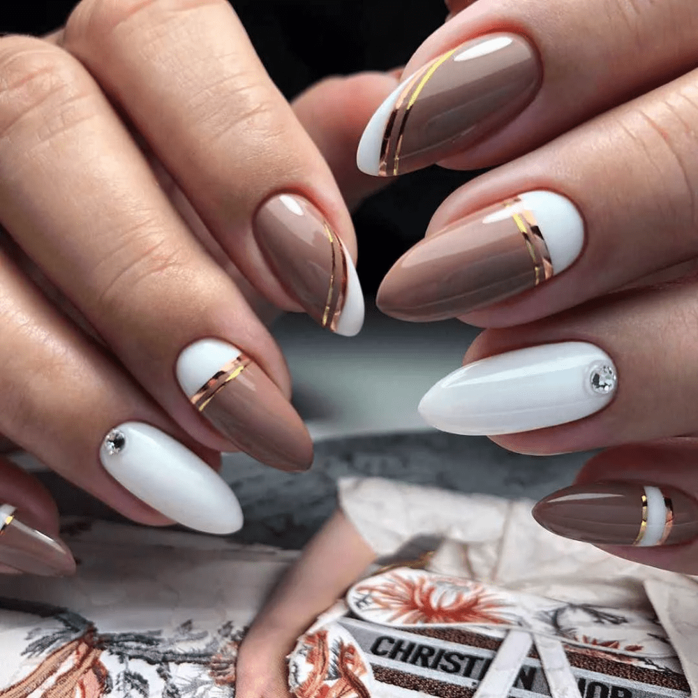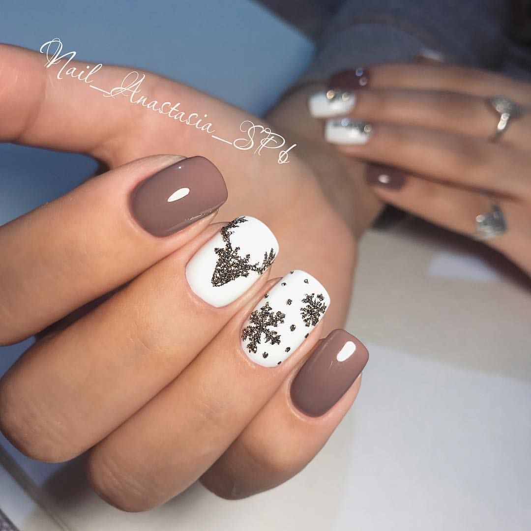 Классическая комбинация шоколада и белого всегда будет в моде и абсолютно не имеет ограничений по вариантам. У дам, которые решились применять подобный дуэт – прекрасный вкус, ведь маникюр получается утончённым, изящным.
