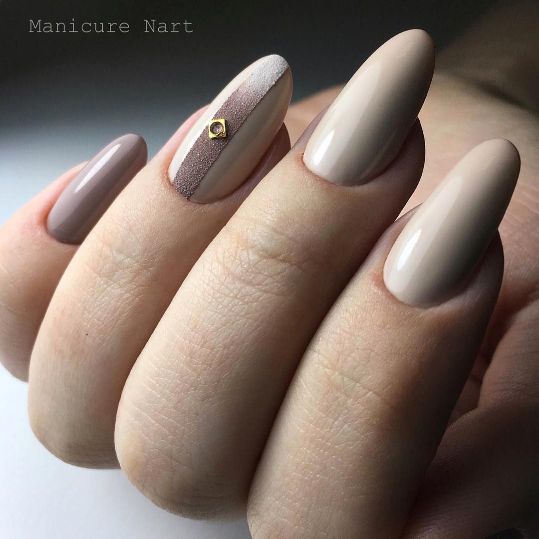 Нежный бежевый делает ногти естественными и при этом выглядит более оригинально, нежели классический розовый.