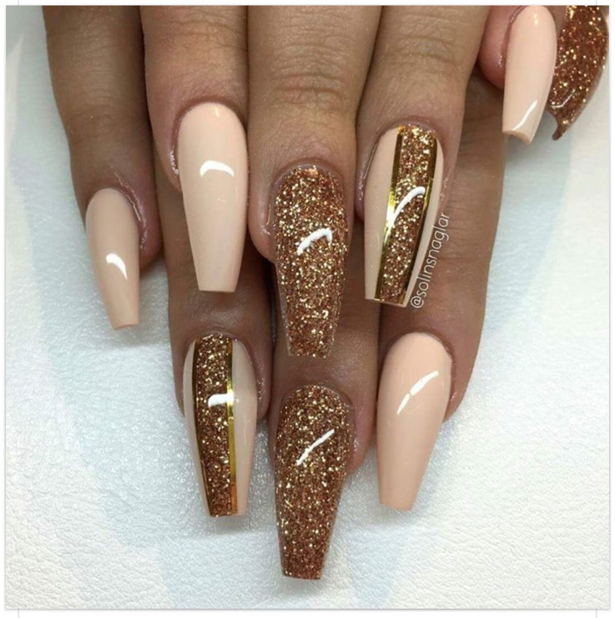 Украшение ноготков золотом – отличная идея для любого праздничного мероприятия. Готовое покрытие получается роскошным, элегантным, выглядит очень дорого. В качестве позолоты применяют лак нужного оттенка, коричневое покрытие с золотыми блёстками, золотистый глиттер, фольгу.