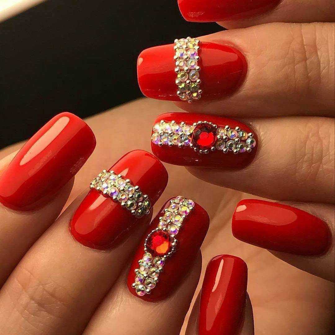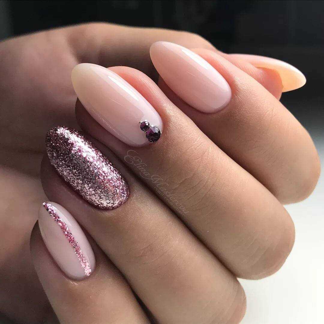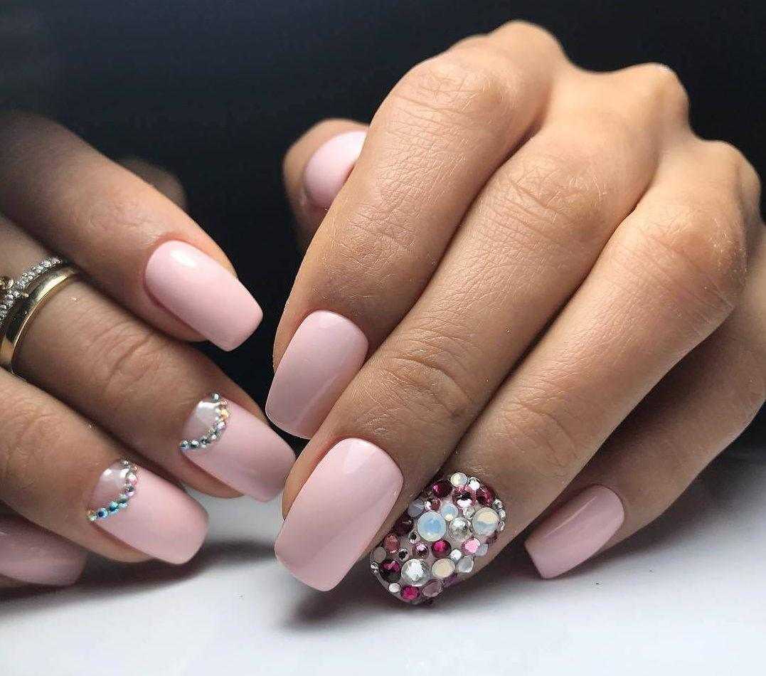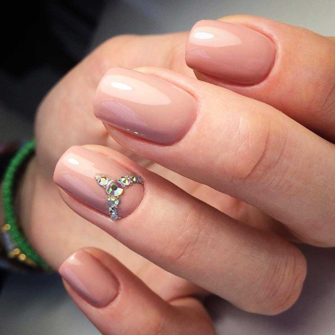 Блестки и пайетки допускаются только на одном ногте либо на нескольких, но у основания ногтевой пластины. Собственно, камешки, стразы и жемчужины можно наклеить по одному на каждый ноготь — это будет сдержанно и одновременно стильно. Стразами можно подчеркнуть и один ноготь, выложив красивый орнамент. Но тут помните, что камни и блеск должны совпадать с цветом металла и камней тех украшений, которые вы носите на руках.