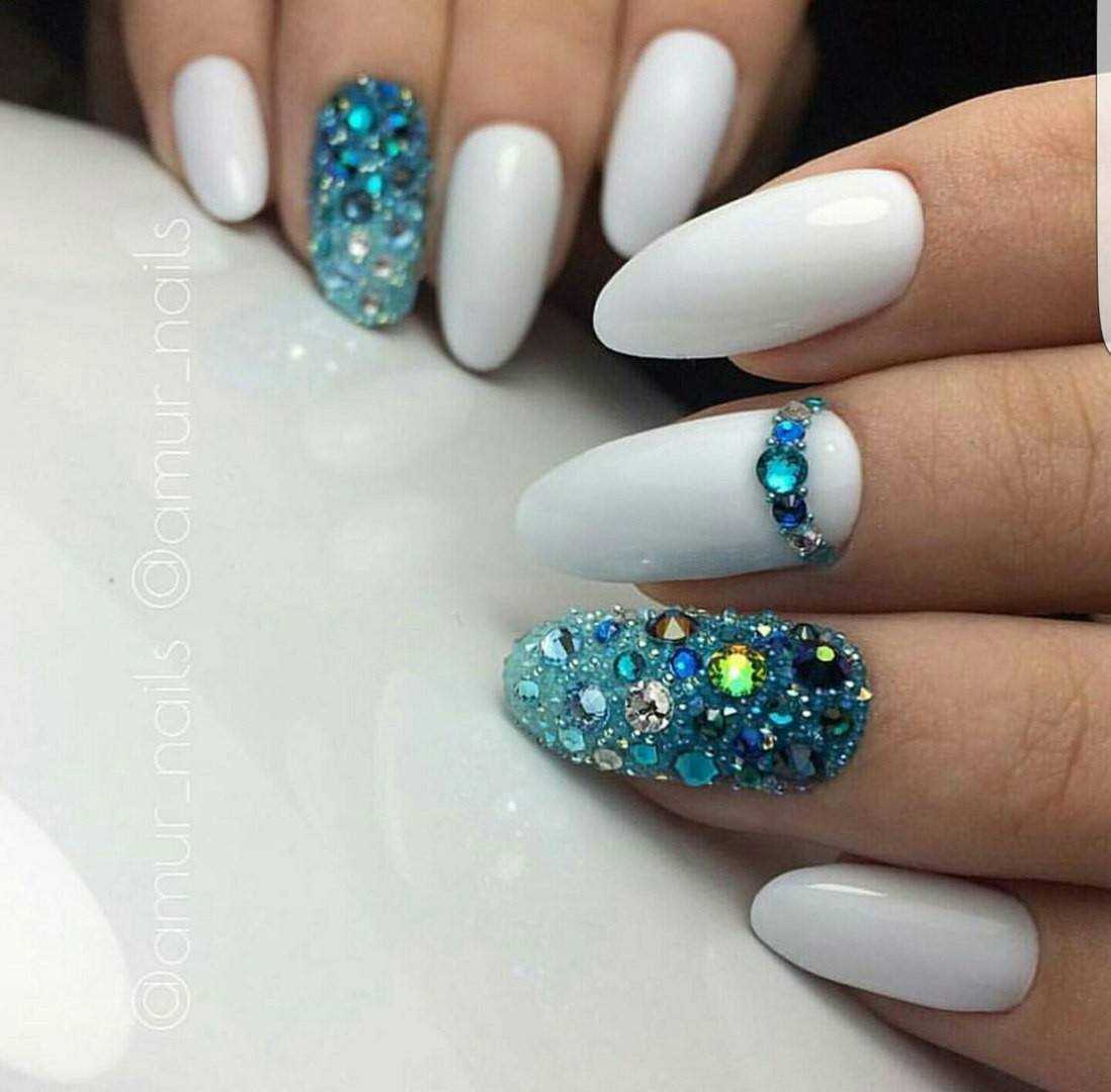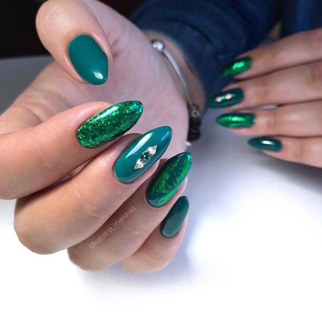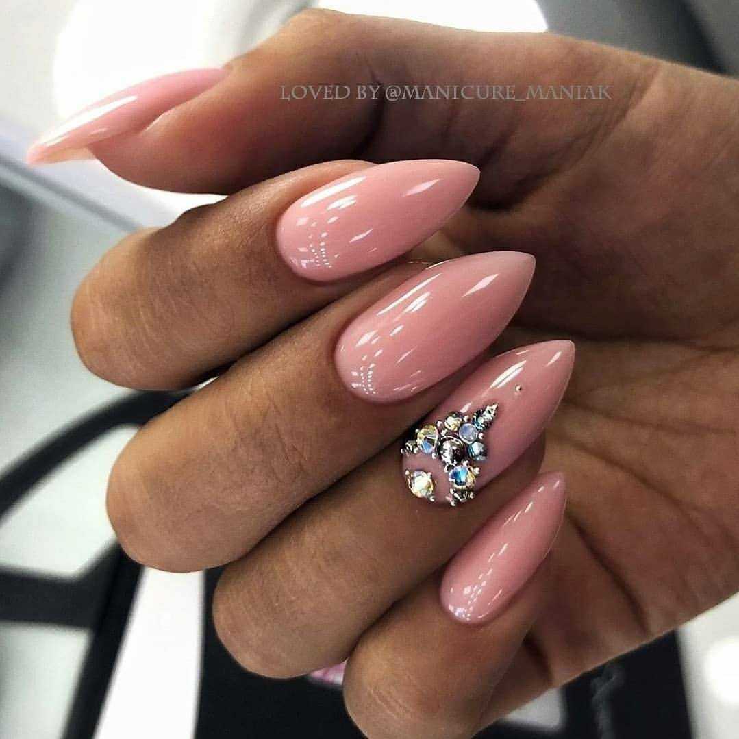 Блестки и пайетки допускаются только на одном ногте либо на нескольких, но у основания ногтевой пластины. Собственно, камешки, стразы и жемчужины можно наклеить по одному на каждый ноготь — это будет сдержанно и одновременно стильно. Стразами можно подчеркнуть и один ноготь, выложив красивый орнамент. Но тут помните, что камни и блеск должны совпадать с цветом металла и камней тех украшений, которые вы носите на руках.