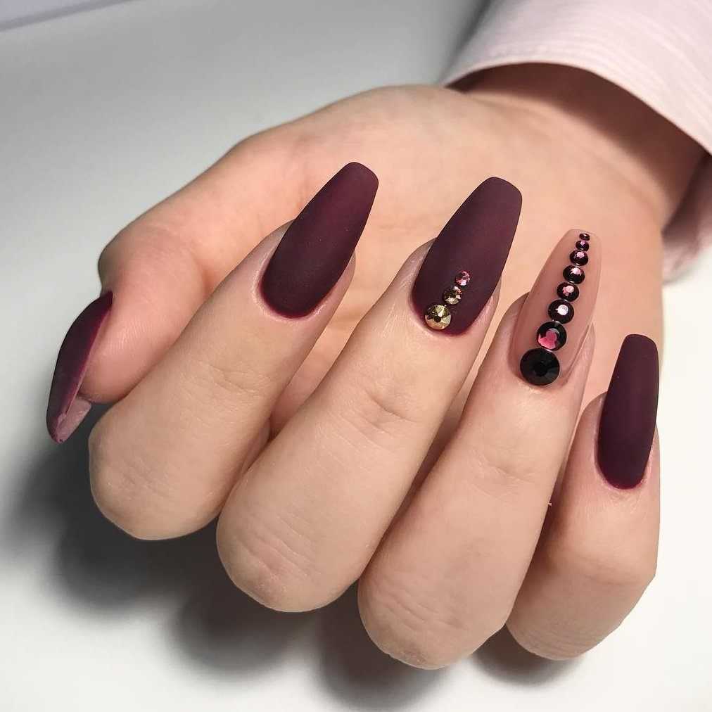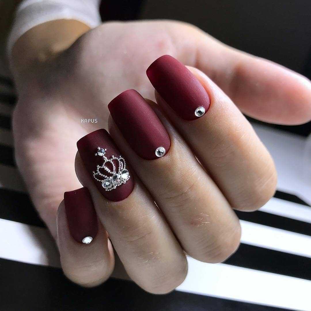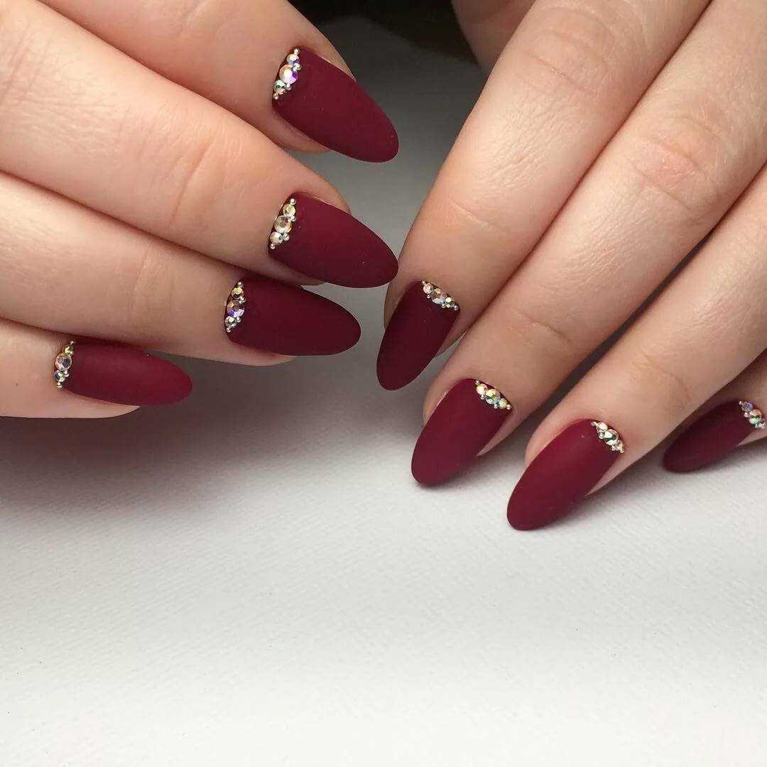 Более приглушенная версия красного лака и является отличным вариантом не только для праздников, но и будней. Богатый и роскошный бордовый маникюр, даже в минималистическом исполнении, подчеркнет безупречный вкус и статус на любом мероприятии.
