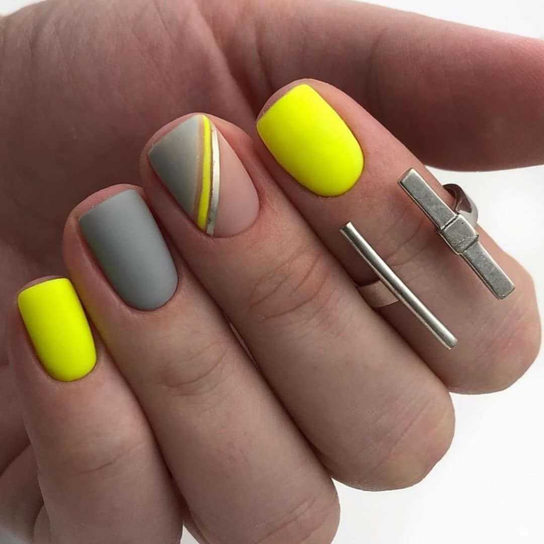 Богатство цвета освежит возрастной маникюр, добавит лоска и благородства. Цвет может использоваться для вставок в качестве акцентов. Подходит для вечернего дизайна. Желтый будет органично смотреться в летнее время, а стильные стразы или лаконичный рисунок разнообразит нейл-арт.