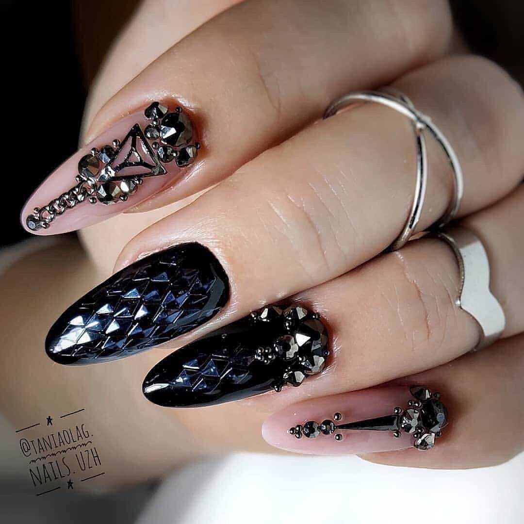 черный цвет лака для ногтей может сделать кожу бледнее и старить, лучше использовать его не часто, хотя он достаточно универсален, и сочетать с другими оттенками, золотом или серебром, интересным дизайном.