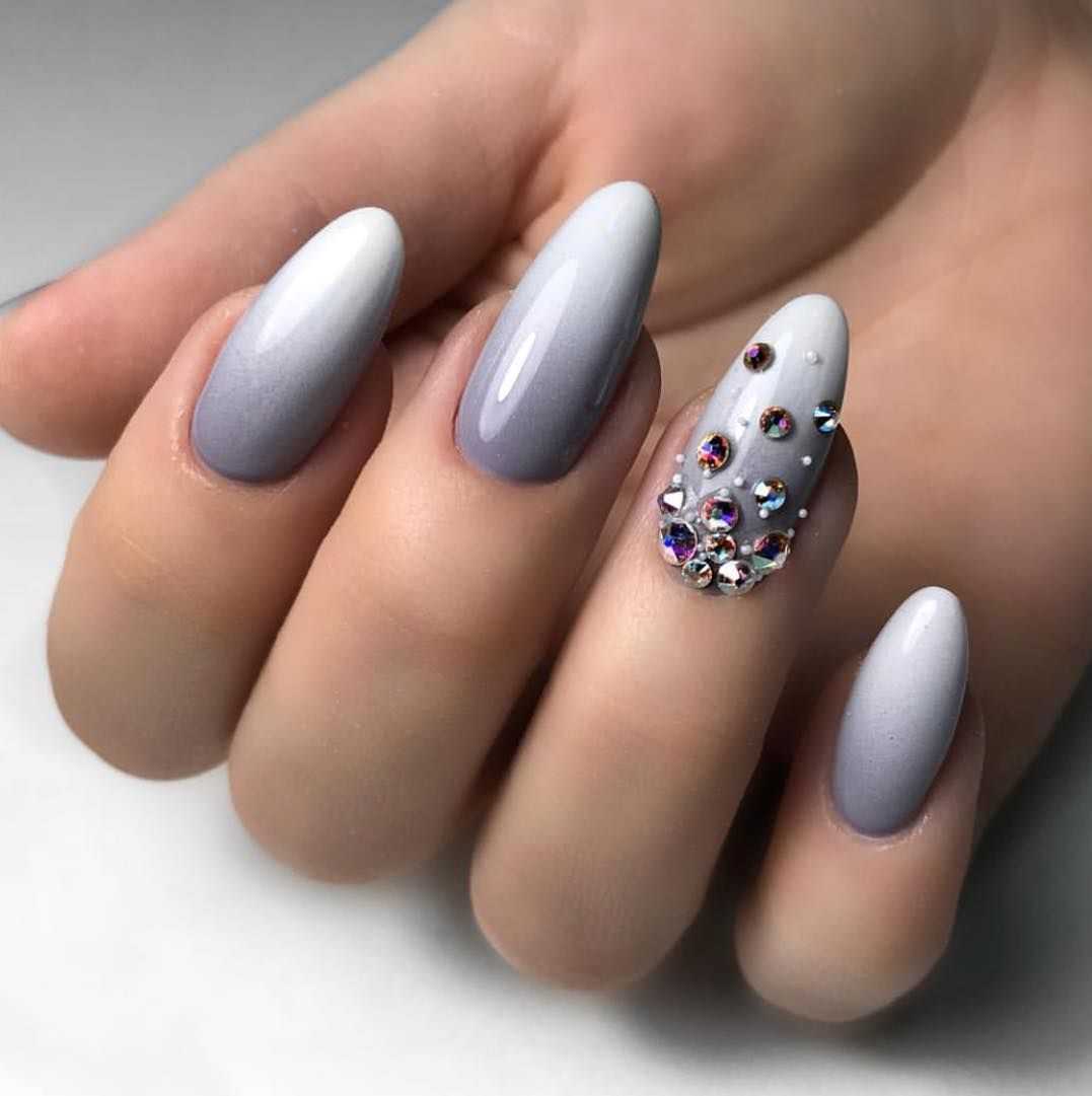 Серый гель – лак должен быть матовым, без блесток. Цвет светлого тона. Наносить его следует лишь на здоровую ногтевую пластину, поскольку серый подчеркивает пигментацию ногтей.