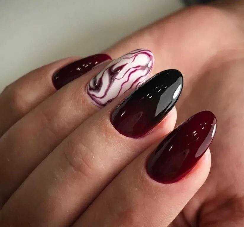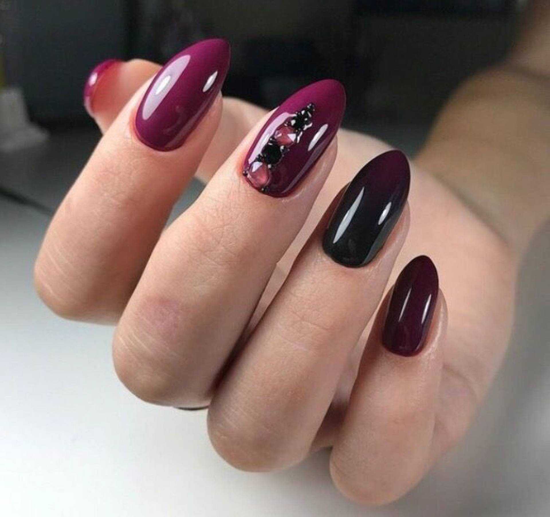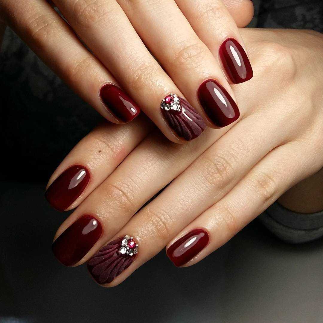 . Бордо, винный, коричнево-красный – эти цвета очень элегантно смотрятся в монохроме. И именно их советуют использовать женщинам старше 35 лет. А чтобы дизайн не казался слишком скучным, добавьте в него чуточку блеска, но не переборщите, а то будет эффект новогодней ёлки.
