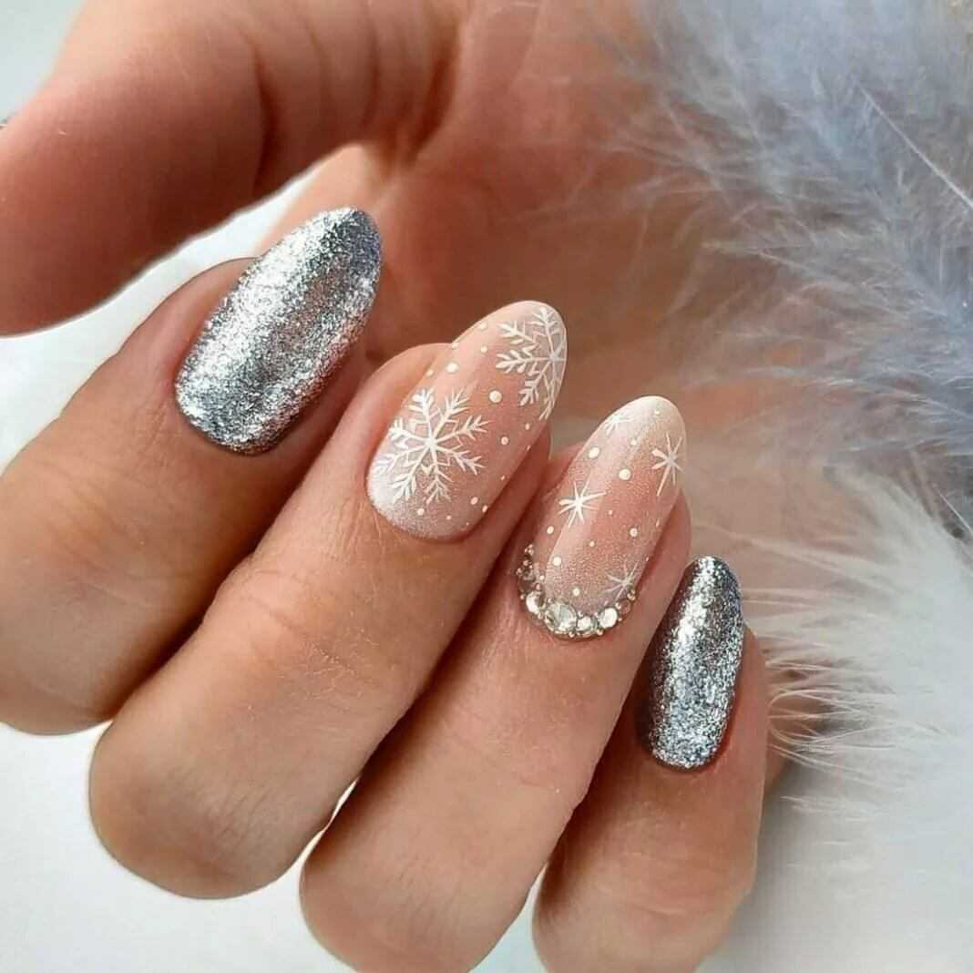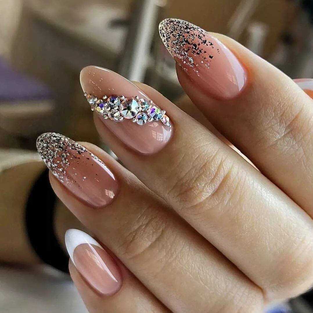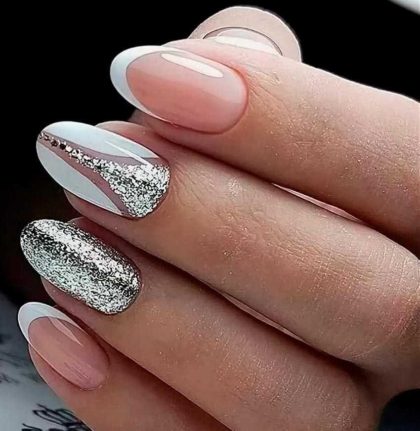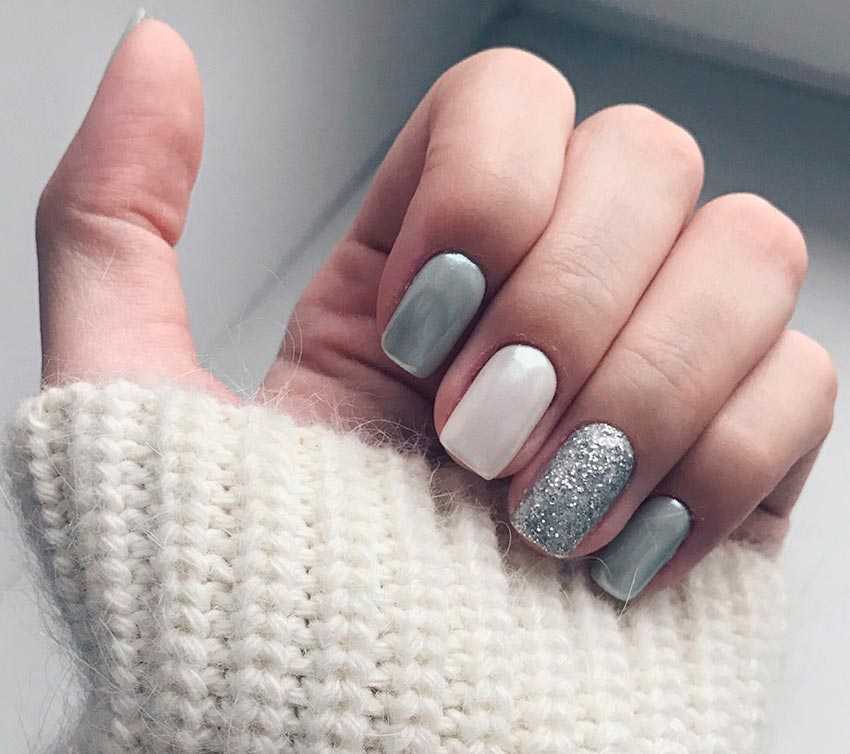 Что касается блеска и глиттеров, камней и страз, пайеток, это все вполне допускается в нейл-дизайне. Но в маникюре после 40 лет всего этого должно быть очень и очень в меру. Лучше всего делать маникюр с блеском для какого-то торжественного события. При этом стоит использовать лаки и гель-лаки с очень мелким глиттером, к примеру, модный для сезона осень-зима-2020-2021 «черный млечный путь». Для нежного перламутрового блеска можно использовать жемчужную втирку на светлом фоне базового покрытия.