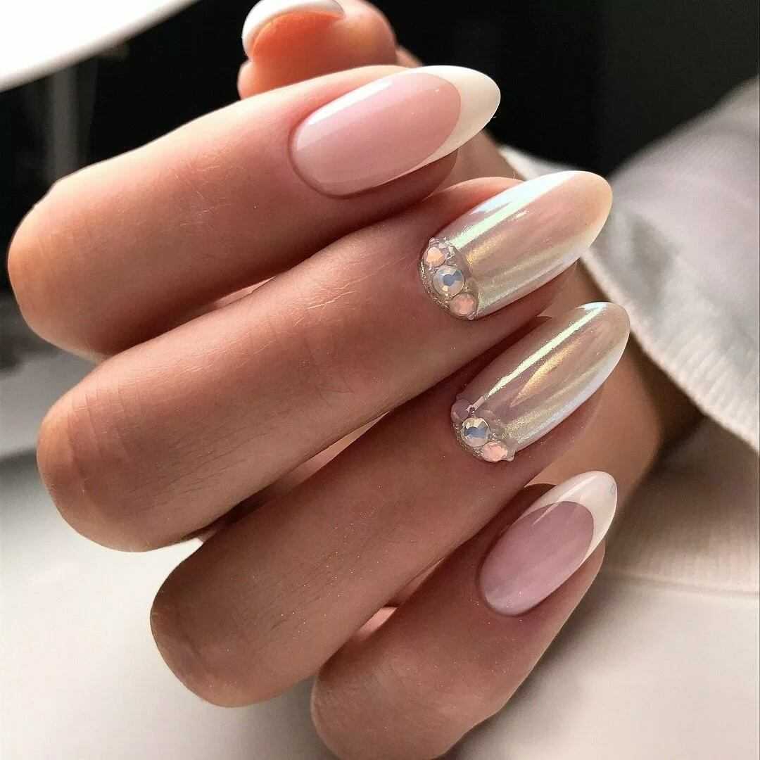 . Перламутровые бусины дополнят образ женщины благородного возраста. Но не стоит покрывать всю ногтевую пластину жемчужинами, это будет уже перебором и утяжелит ваш образ, но несколько их добавить в дизайн можно. Не обязательно использовать сами жемчужины, можно так же просто покрыть ногти жемчужным гель-лаком. В любом случае, такой дизайн получится очень женственным и стильным.
