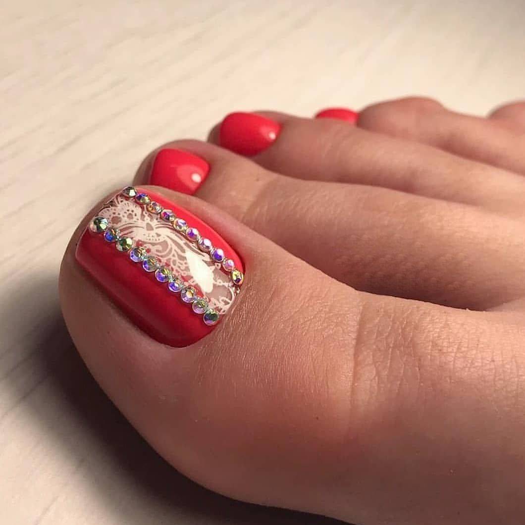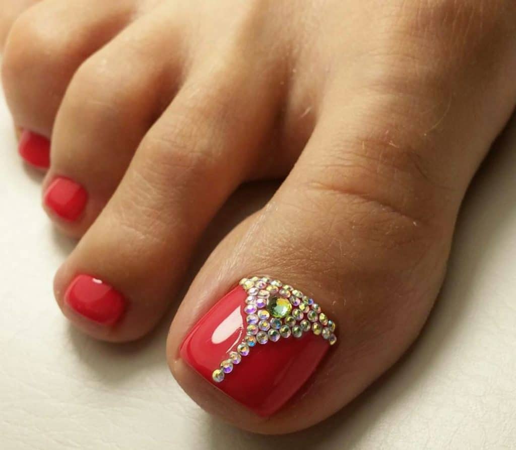 В сочетании с красным гель-лаком, любой из этих дополнительных элементов поможет создать стильный педикюр.