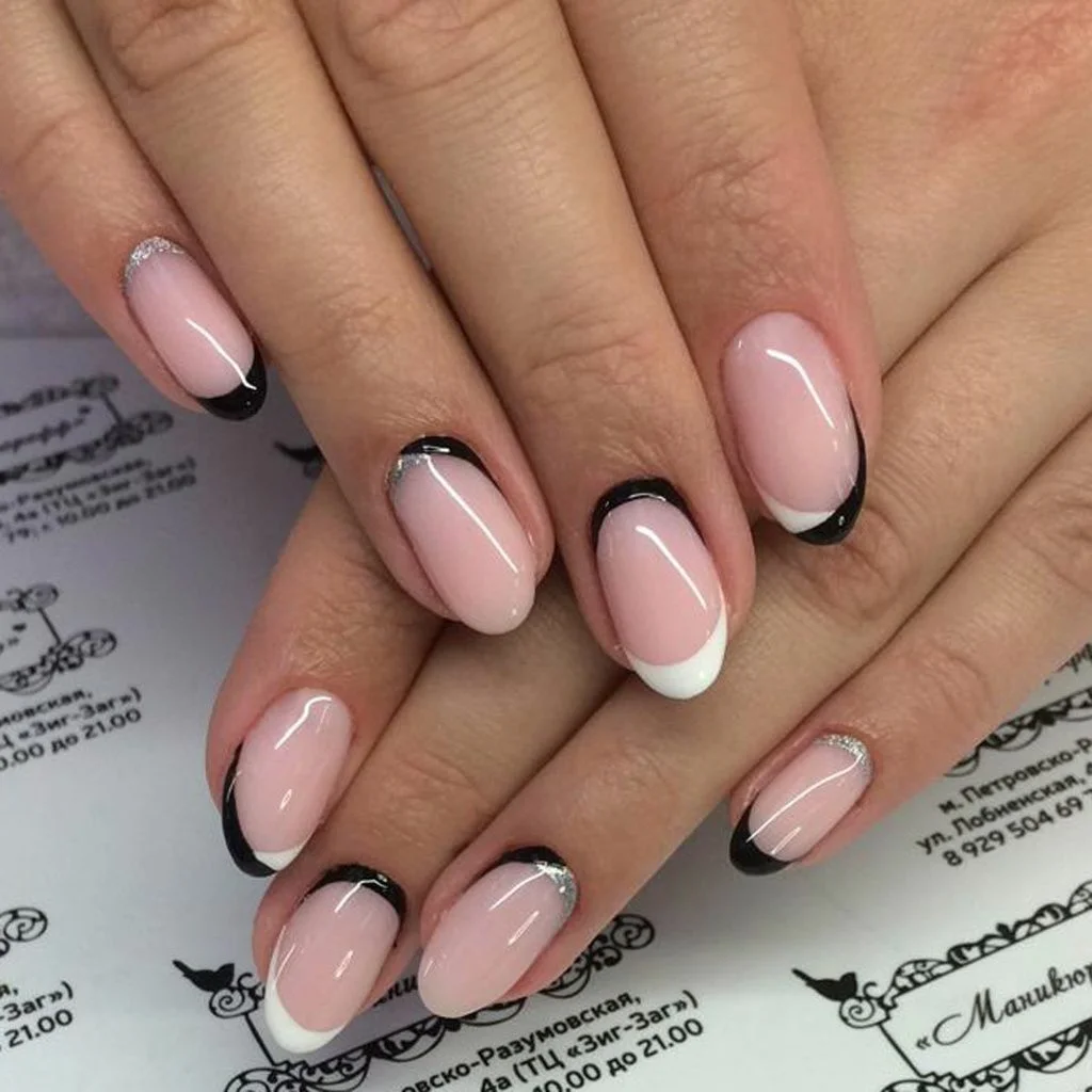 Популярнейший вариант для маникюра в таком стиле – сочетание бежевого и чёрного цветов лака. Такой маникюр отлично подходит к любому наряду.