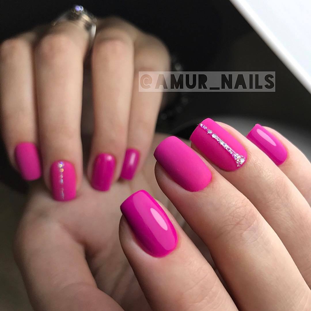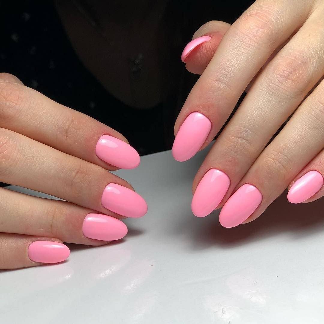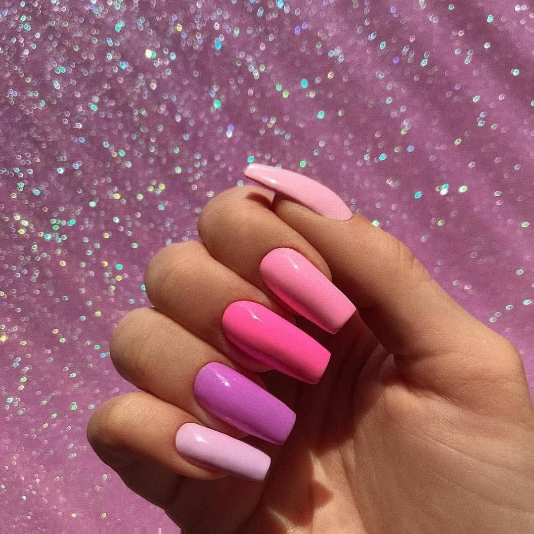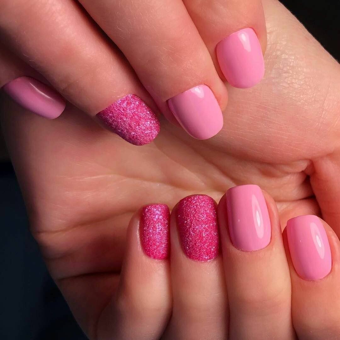 От пастельно-розовых ногтей до блестящих розовых, цвета фуксии, насыщенного розового и полупрозрачного намека на этот цвет.