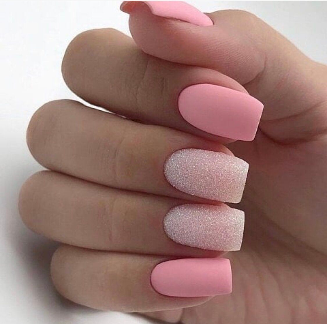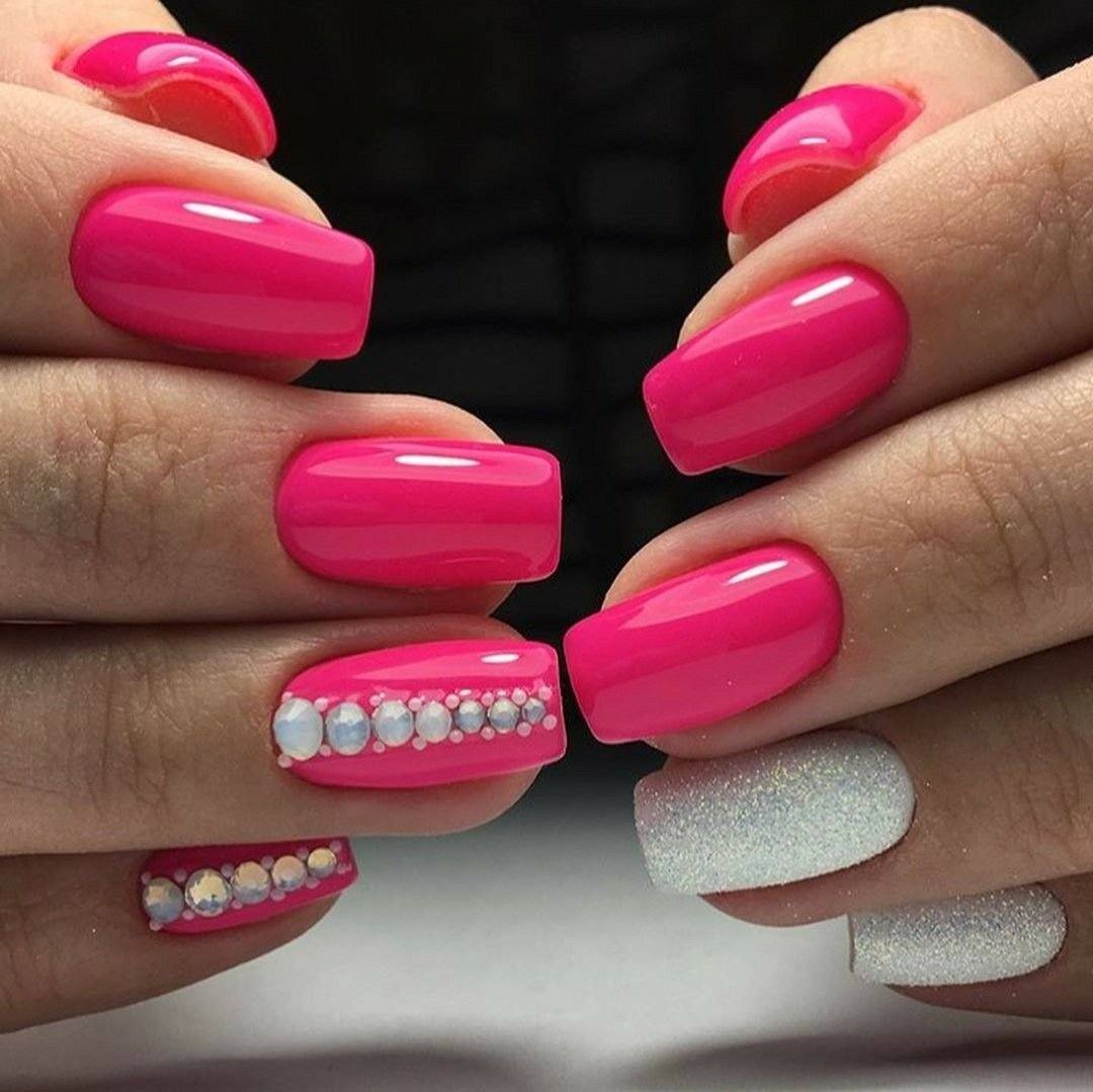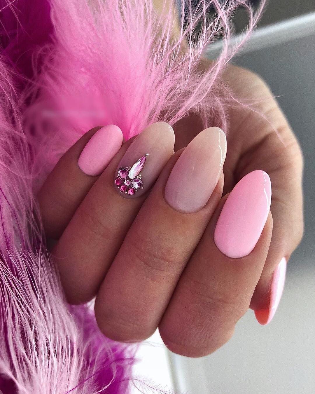 От пастельно-розовых ногтей до блестящих розовых, цвета фуксии, насыщенного розового и полупрозрачного намека на этот цвет.