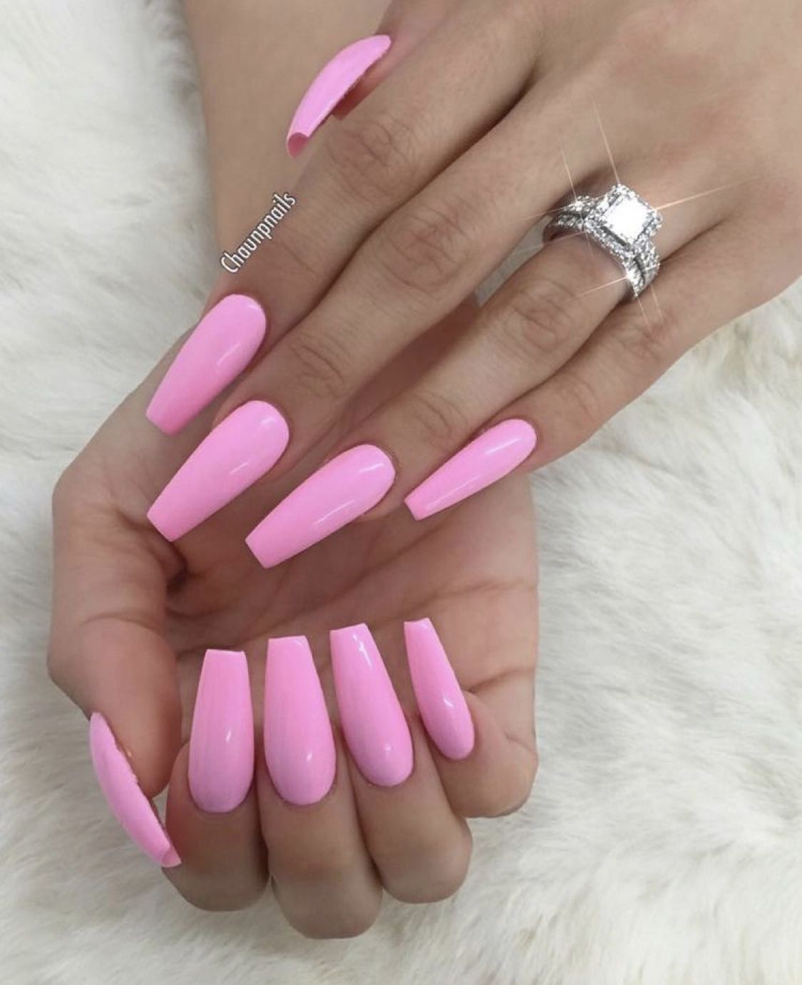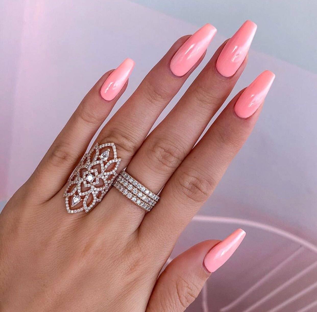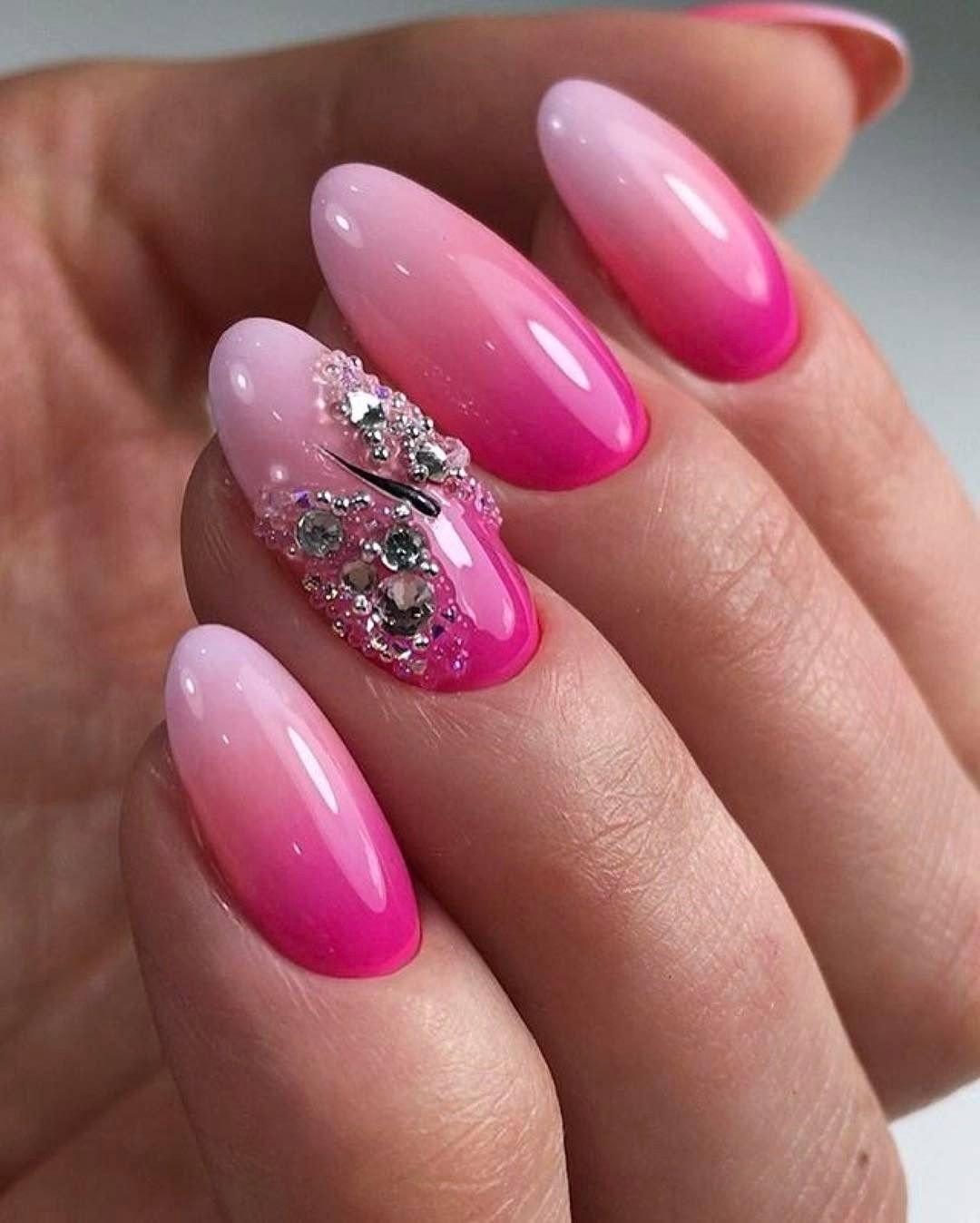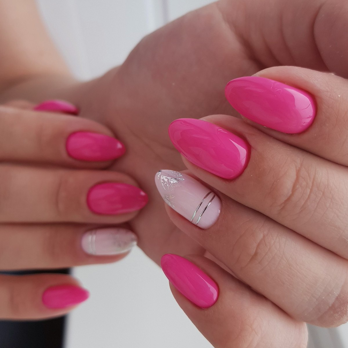 От пастельно-розовых ногтей до блестящих розовых, цвета фуксии, насыщенного розового и полупрозрачного намека на этот цвет.