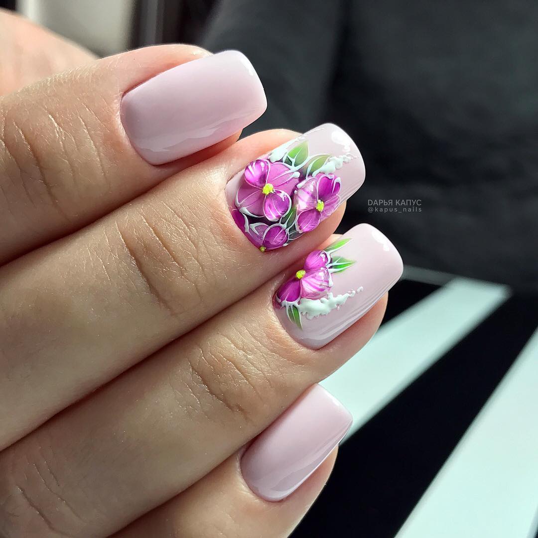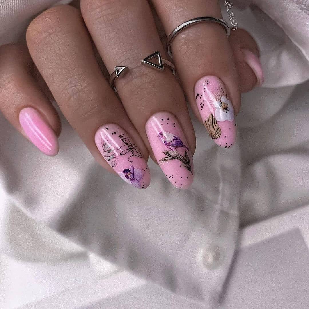 Это маникюр, при котором на ногтях создается различный рисунок. Розовый маникюр с рисунком может быть выполнен в различных стилях – от абстрактного и минималистичного до яркого и экстравагантного.