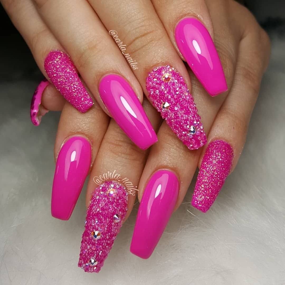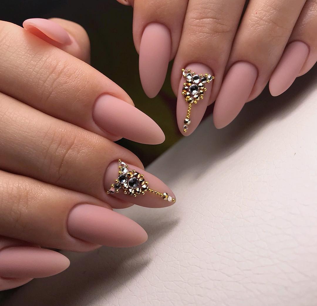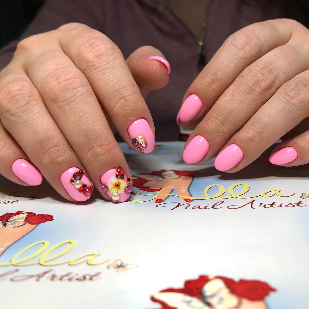 Это маникюр, при котором на ногтях добавляются разнообразные стразы, пайетки и блестки. Розовый цвет отлично сочетается со сверкающими элементами, поэтому этот маникюр будет особенно актуален для вечерних выходов.