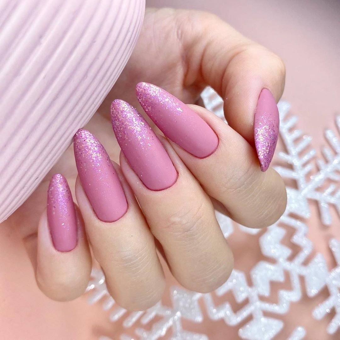 Это маникюр, при котором на ногтях создается эффект блесток. Розовый цвет и блестки создадут очень красивый и яркий маникюр, который подойдет для любого праздника.
