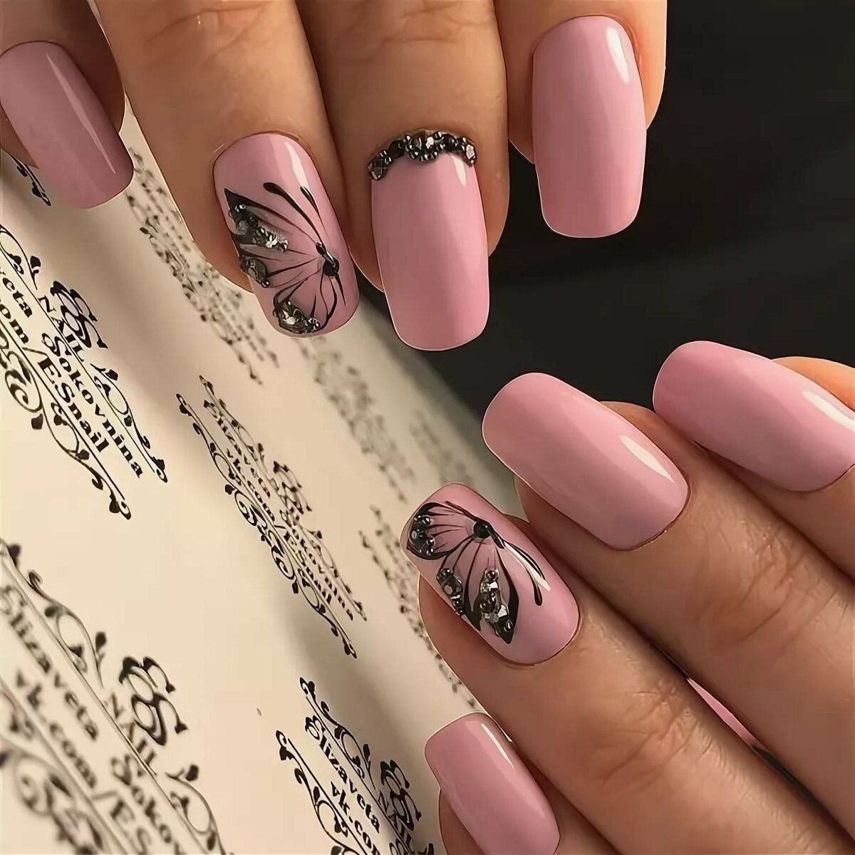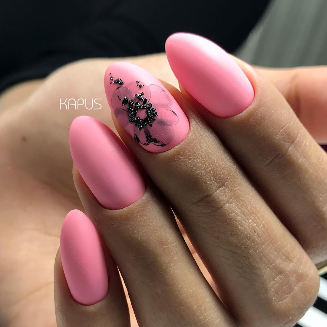 Ниже мы подобрали несколько идей маникюра в розовых тонах с вкраплением черного. Посмотри, насколько эффектно смотрится френч — мы бы не догадались так интересно скомбинировать эти два цвета. Чтобы усилить глубину черного, в некоторых дизайнах можно использовать черный песок или добавить немного серебряного глиттера.