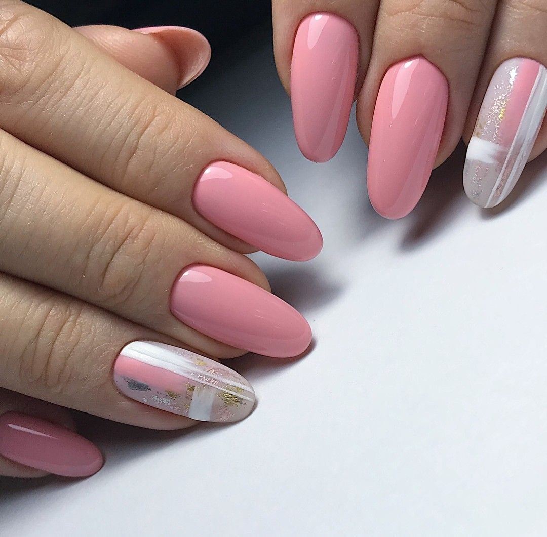 Чтобы сделать белый маникюр в нежно розовых тонах как на фото, ты можешь использовать стразы, градиент, мрамор или фольгу. В этом случае не стоит бояться ярких элементов — на таком лаконичном фоне они будут выглядеть уместно.