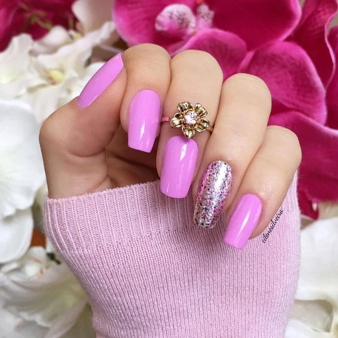 Лиловые и пурпурные оттенки сочетаются с близкими друг к другу, но и с противоположными. Сиреневые цвета удивительны сами по себе. Вместе с розовым создают прекрасный дуэт. Дизайн часто выполняют в техниках флористики или линии блестками.