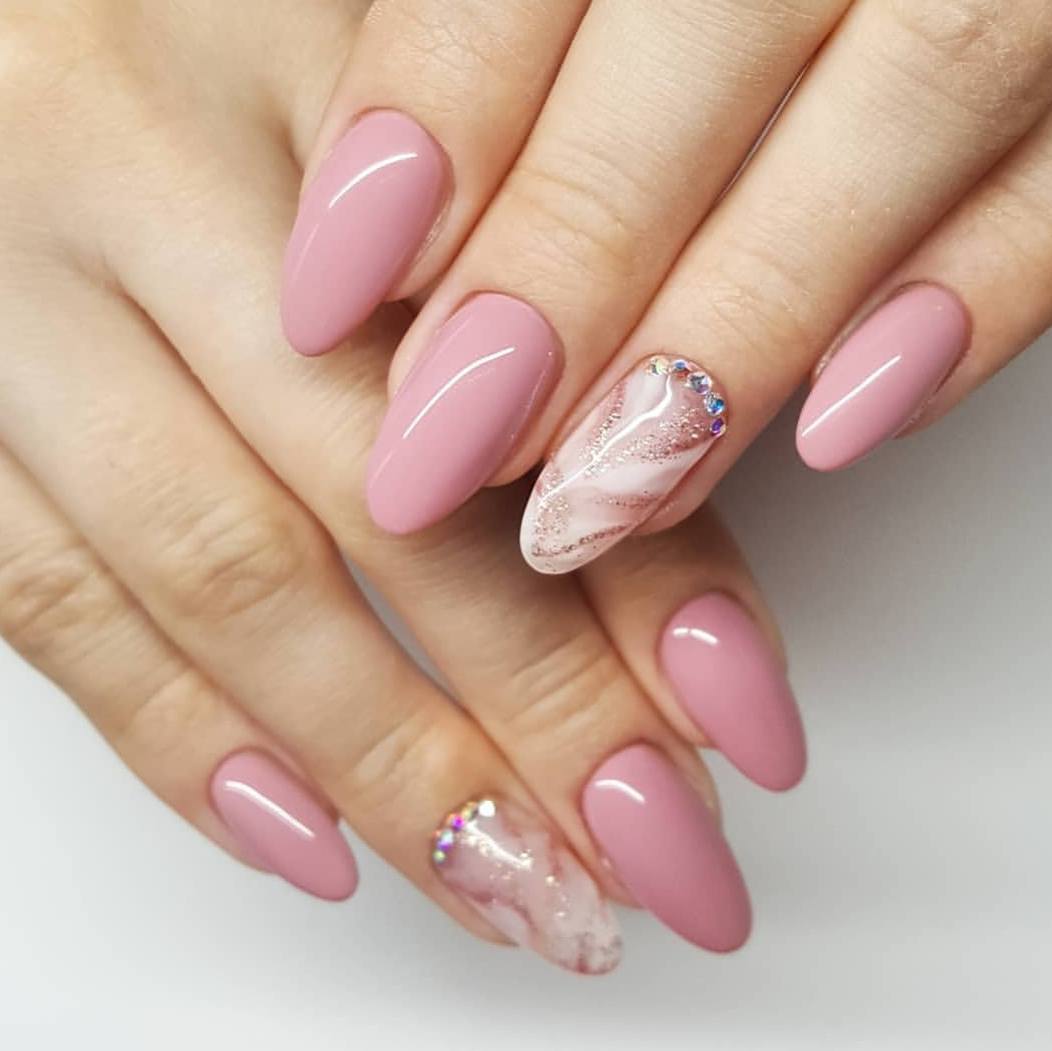 - Еще один популярный оттенок в нейл-салонах — пудрово-розовый, отличная альтернатива более классическому бежево-розовому (это также лучший оттенок для свадебного нейл-арта).