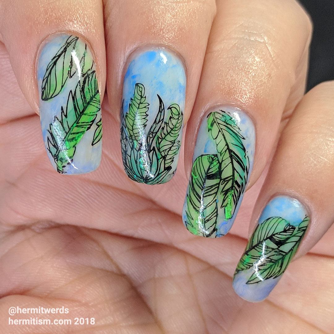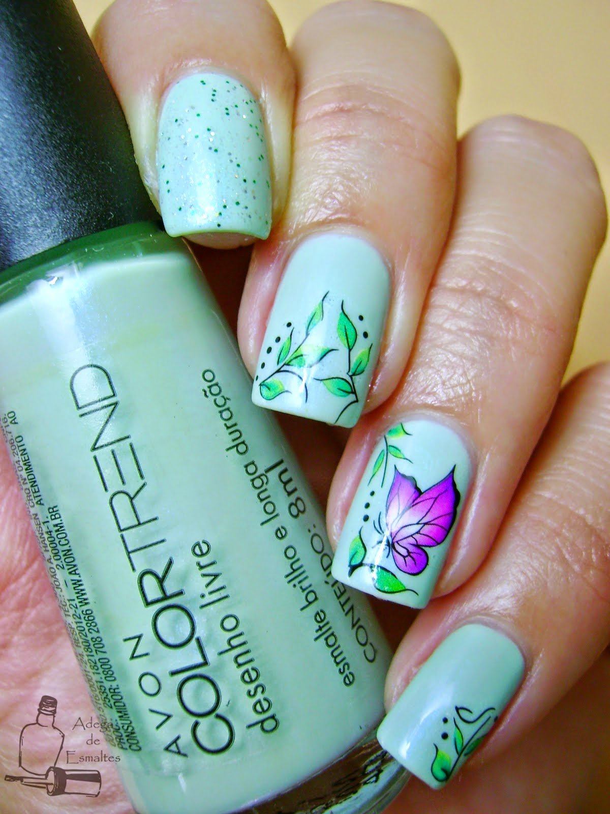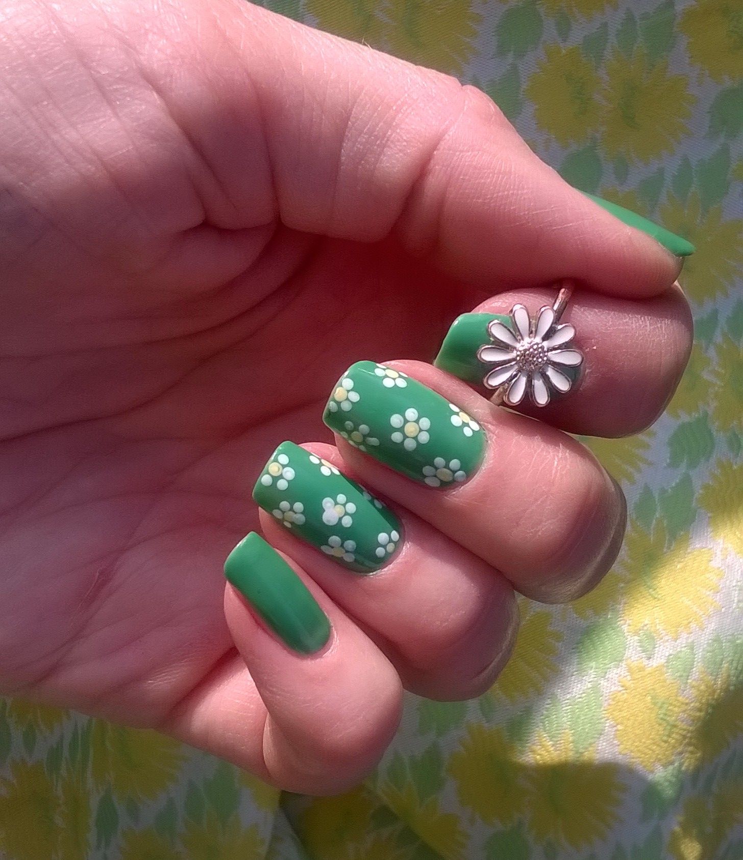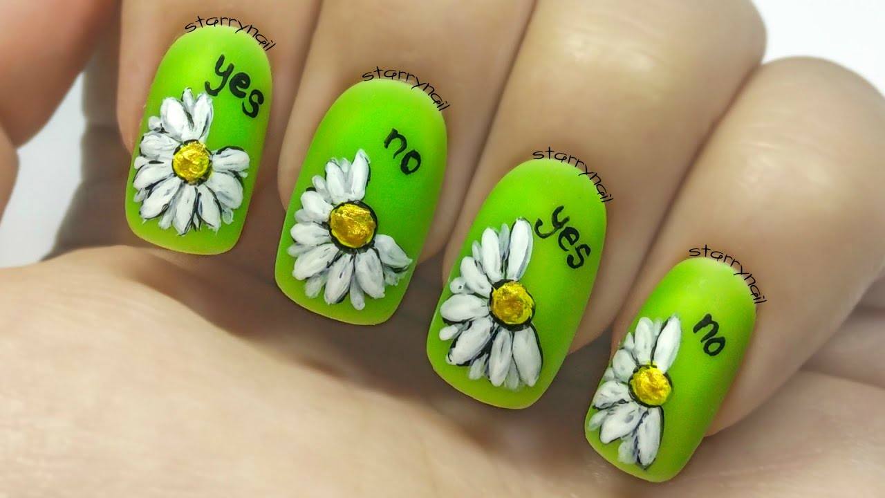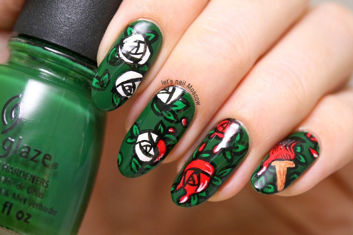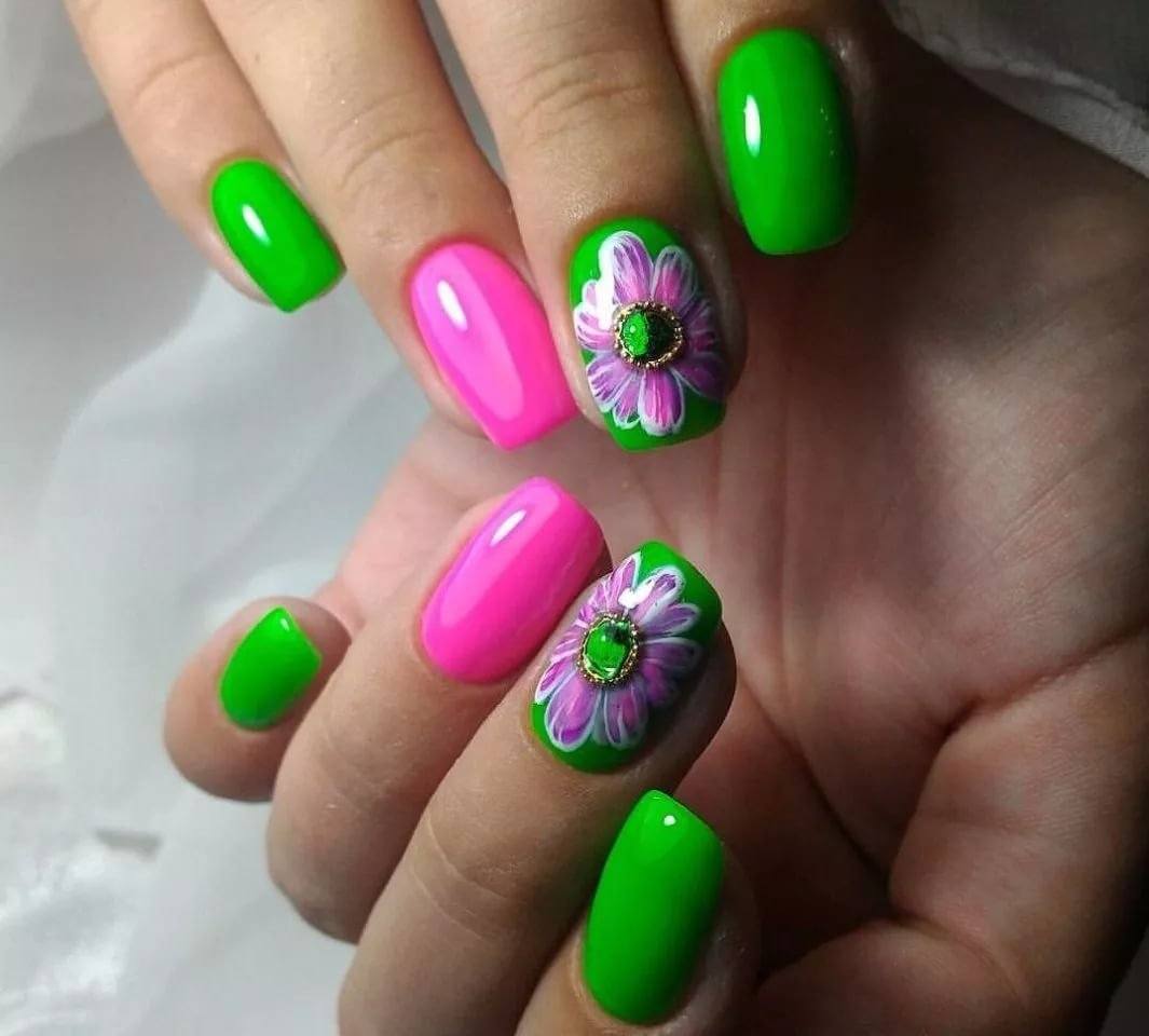 Зеленый маникюр, дополненный рисунком, мгновенно становится более интересным. Самыми трендовыми идеями изображений стали три тематики: