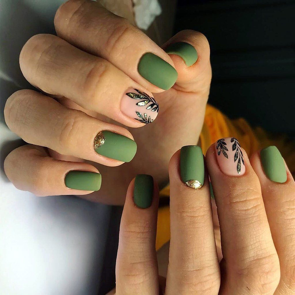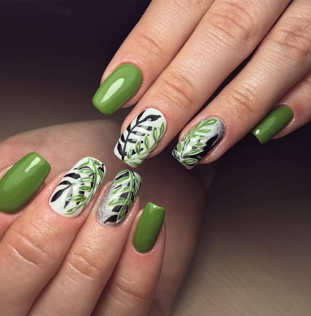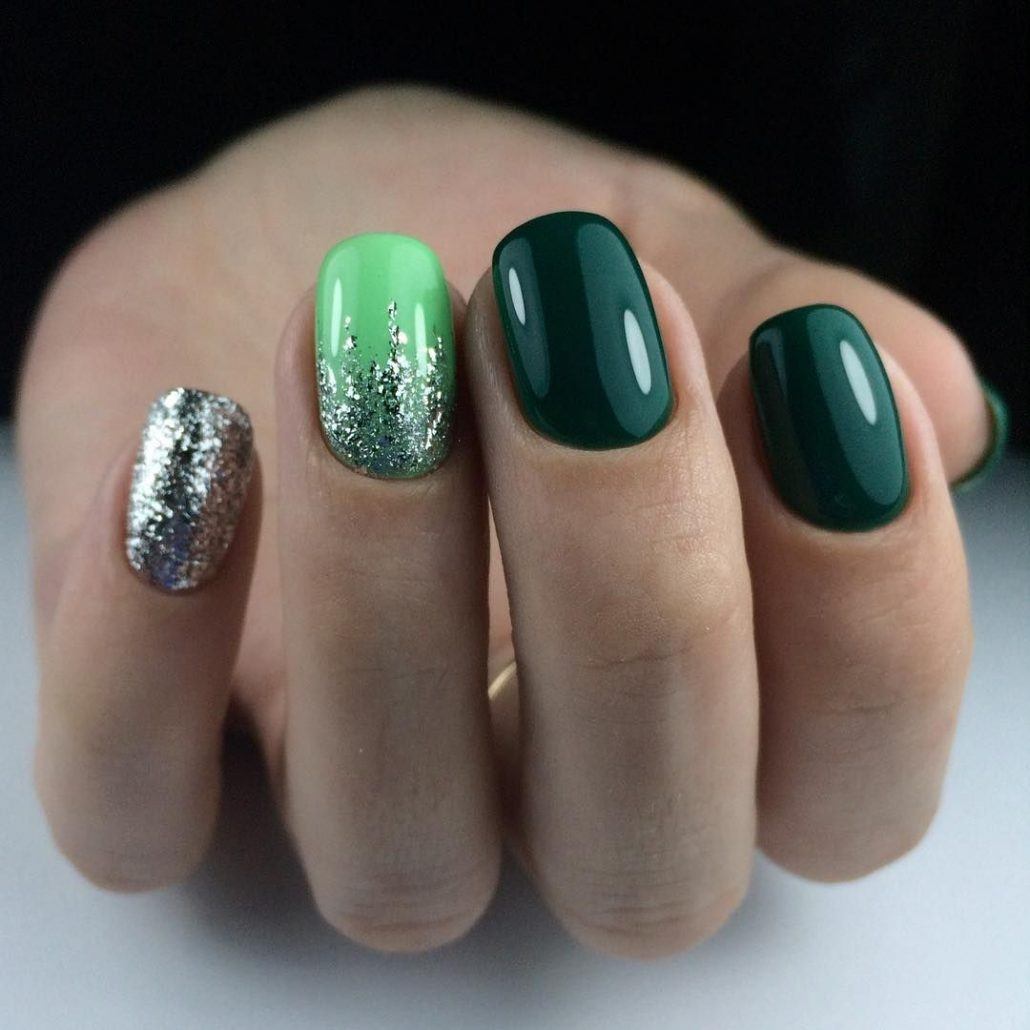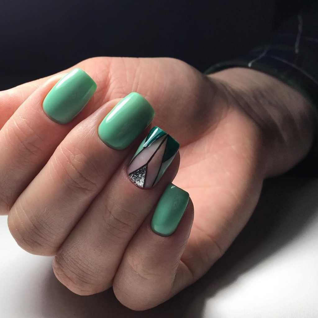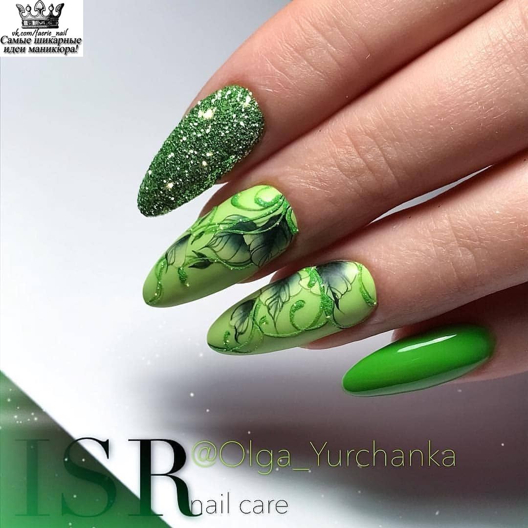 Зелёный маникюр с дизайном для разной формы и длины ногтей