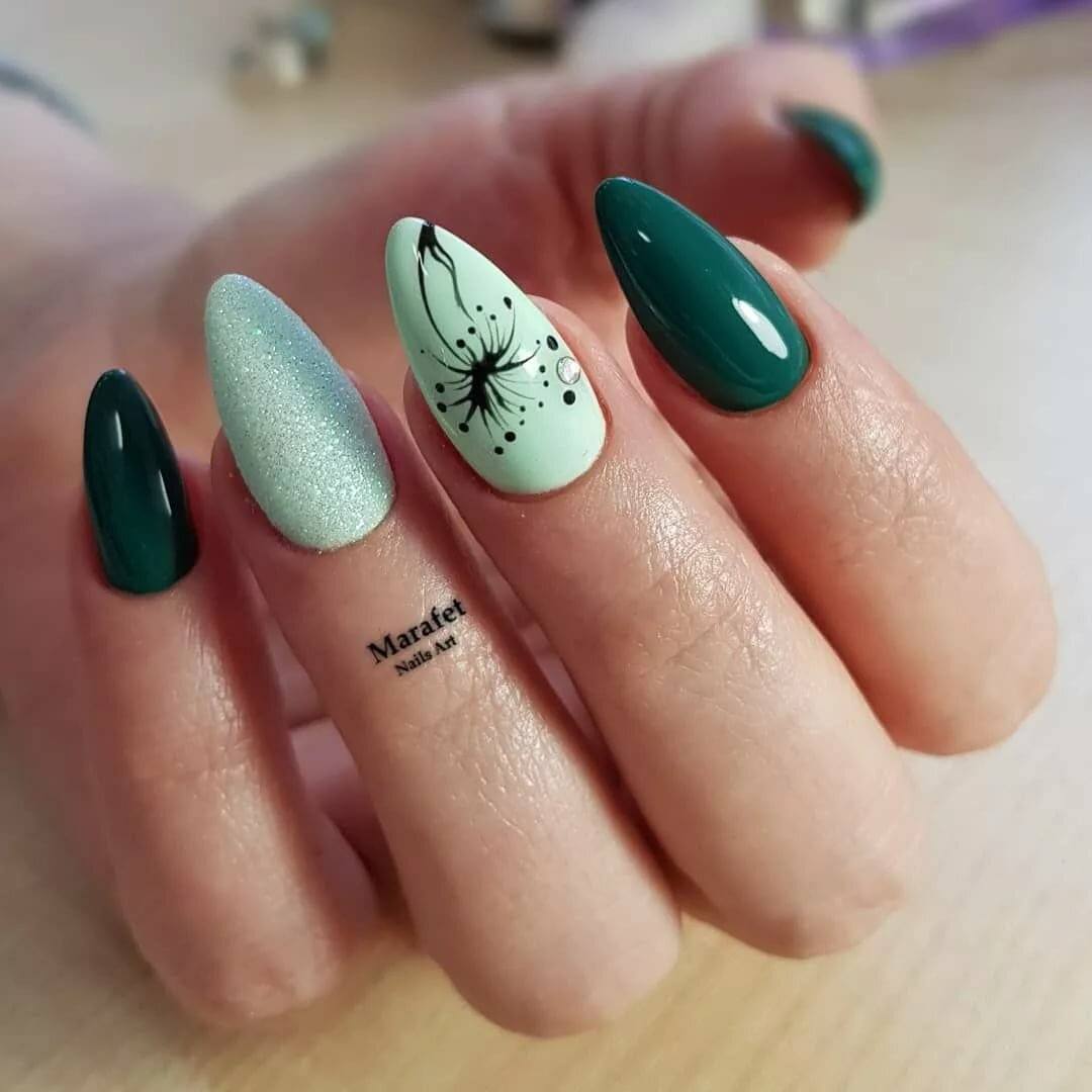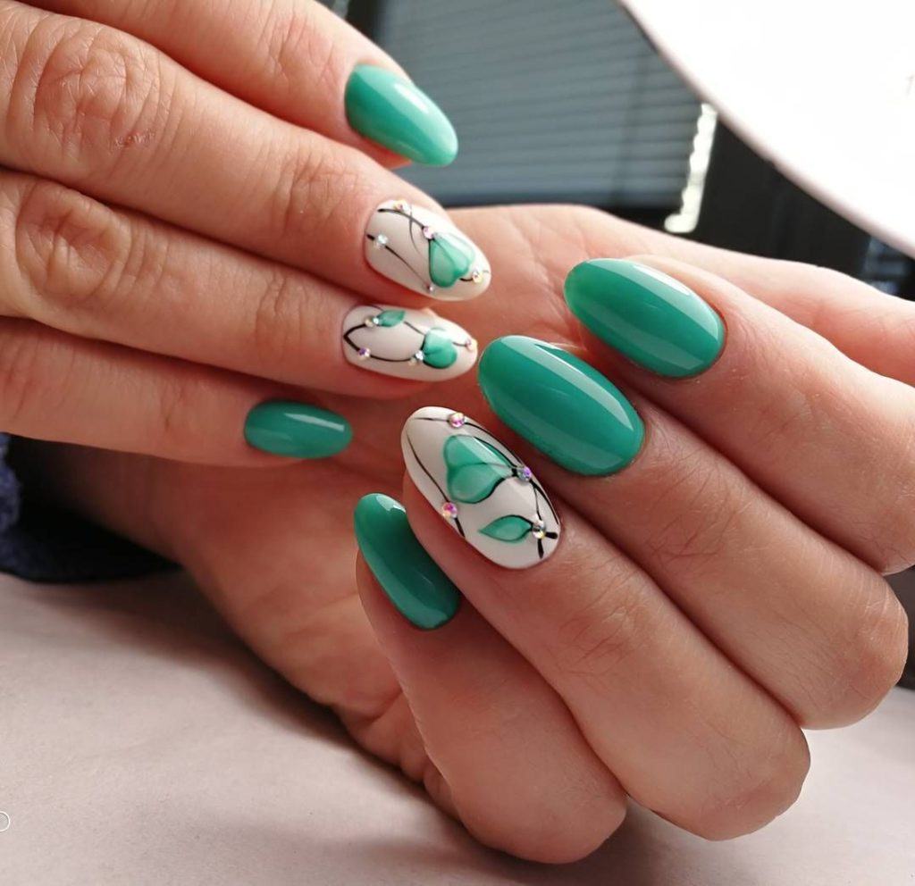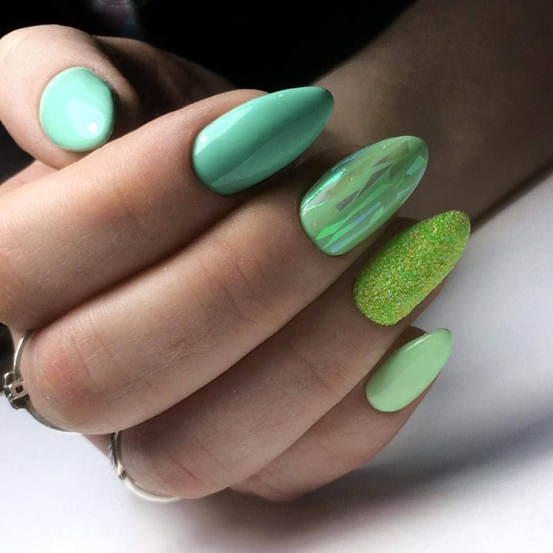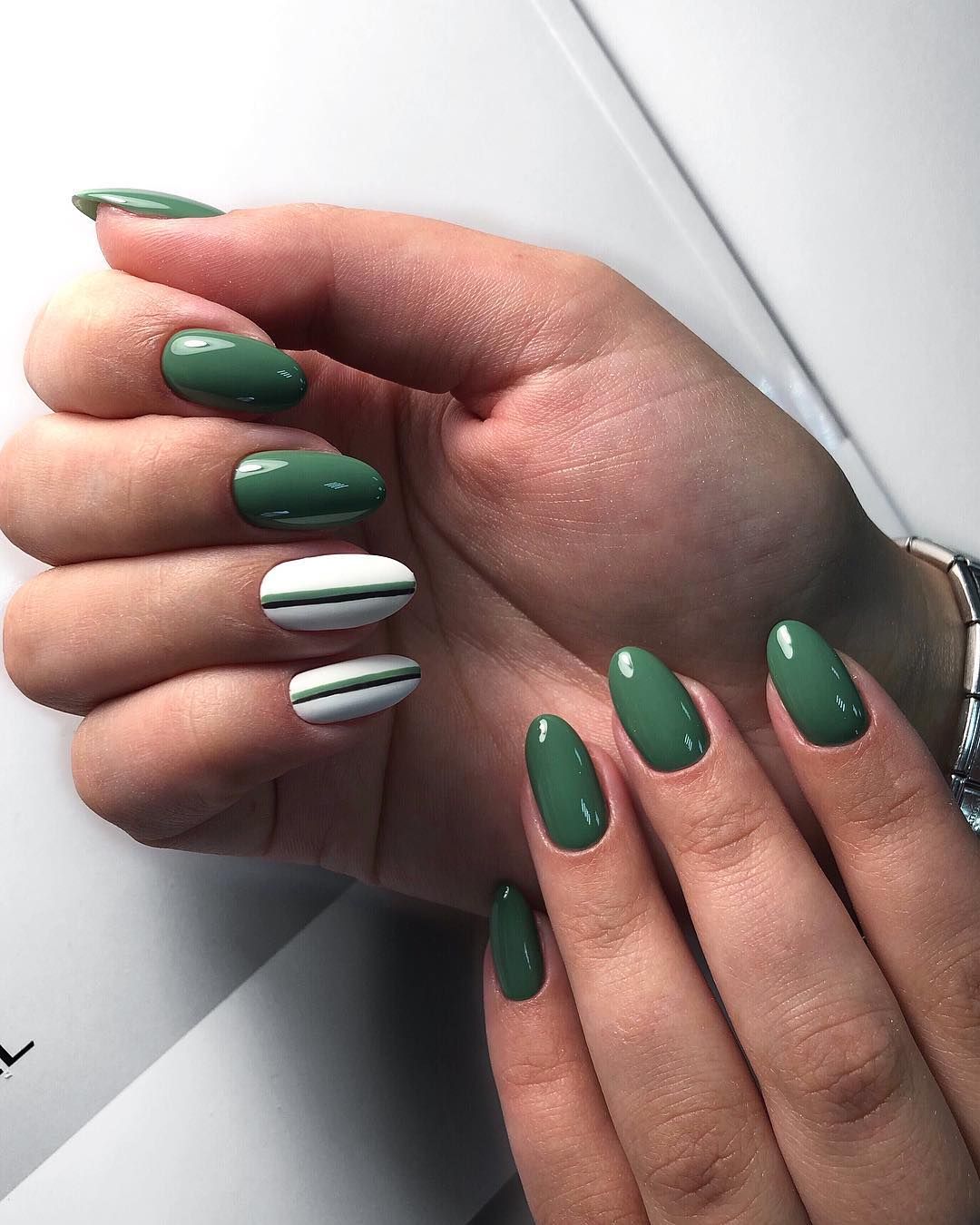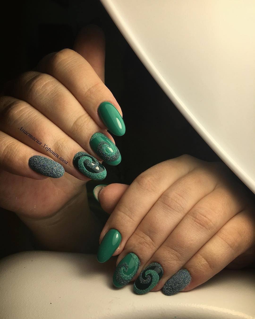 Зелёный маникюр с дизайном для разной формы и длины ногтей